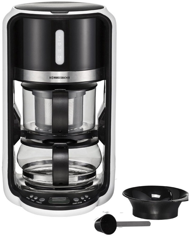Чайная машина ROMMELSBACHER TA 1200 5 программ, 4 температуры заваривания (80/85/90/100 C), время заваривания до 10 минут, функция подогрева, отсрочка запуска, стеклянный чайник, ситечко для чая из нержавеющей стали, 1200 Вт Энергия Класс Б