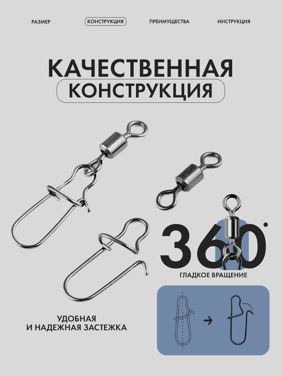 Набор карабинов с вертлюгом для рыбалки 50 ШТ, набор рыболовные принадлежностей. интересное: