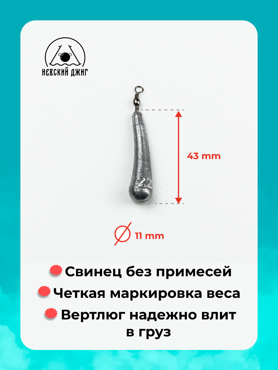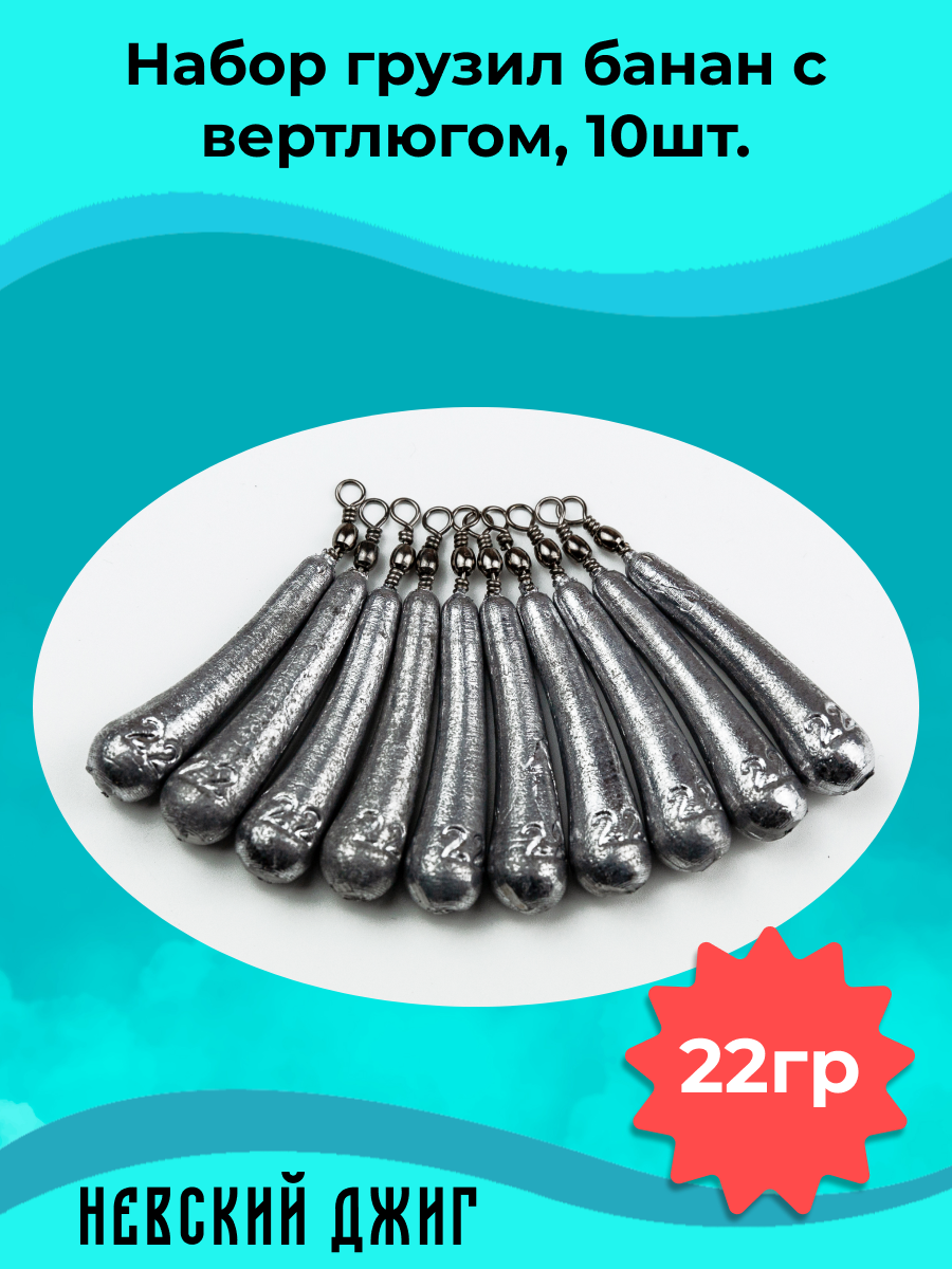 Набор грузил для рыбалки Банан с вертлюгом, 25 гр (10шт) Невский Джиг на отводной поводок Дроп шот