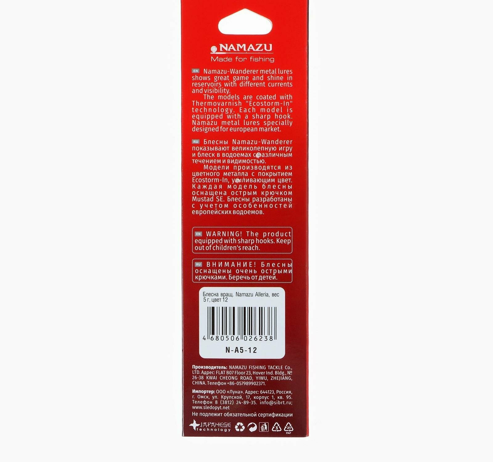 Купить Блесна вращ. Namazu Alleria, вес 5 г, цвет 12