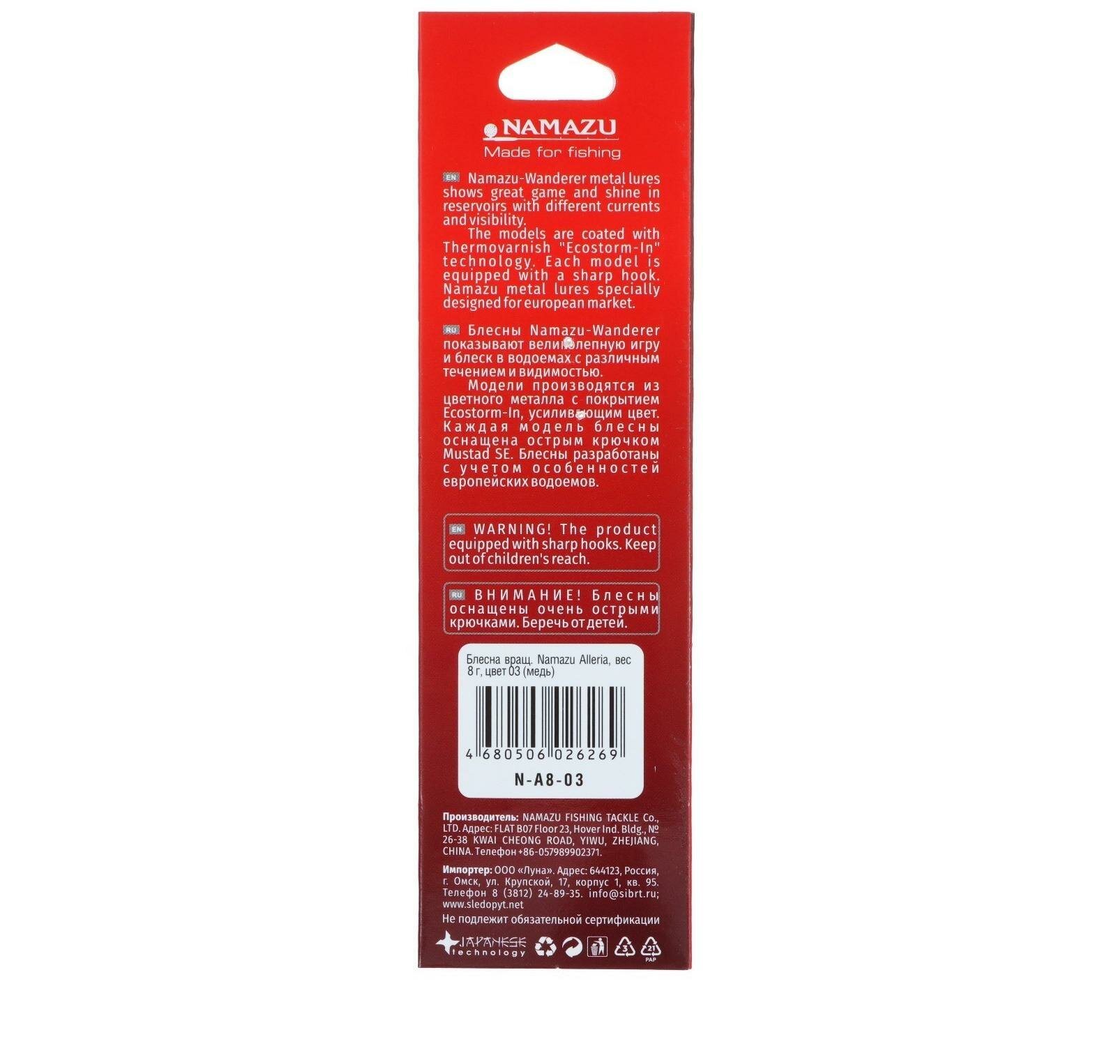 Купить Блесна вращ. Namazu Alleria, вес 8 г, цвет 03