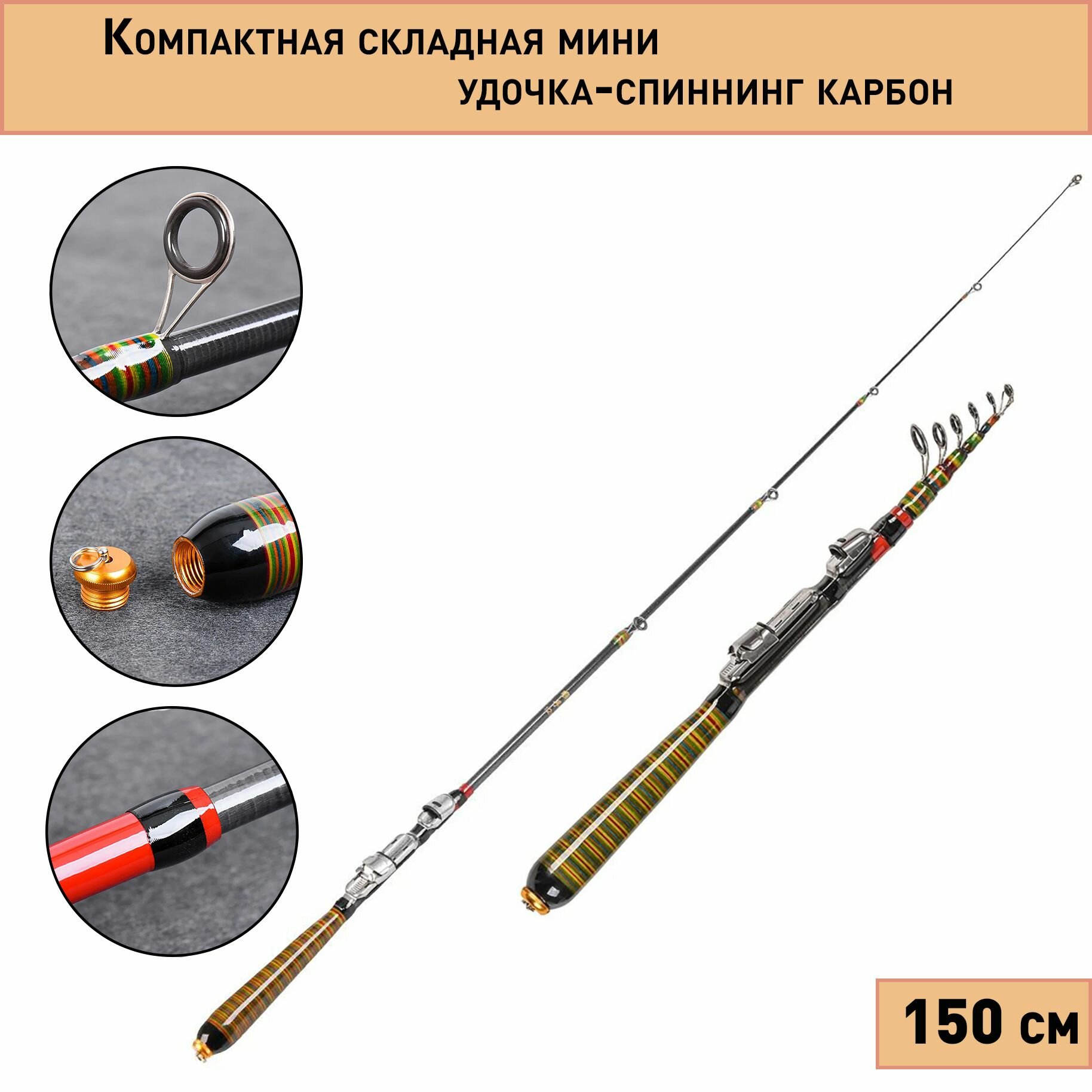 Компактная складная мини удочка-спиннинг карбон 150 см 1.5 метра интересное: