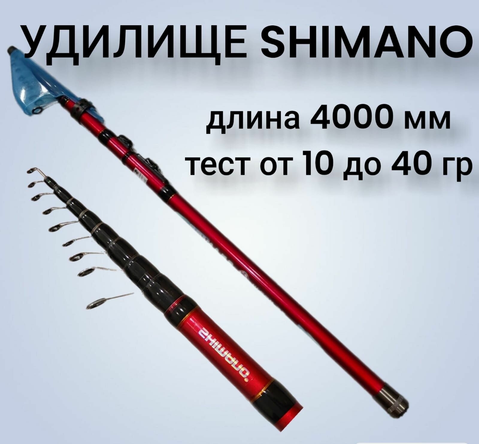 Купить Удилище телескопическое с кольцами 4 метра. Тест 10-40 гр.