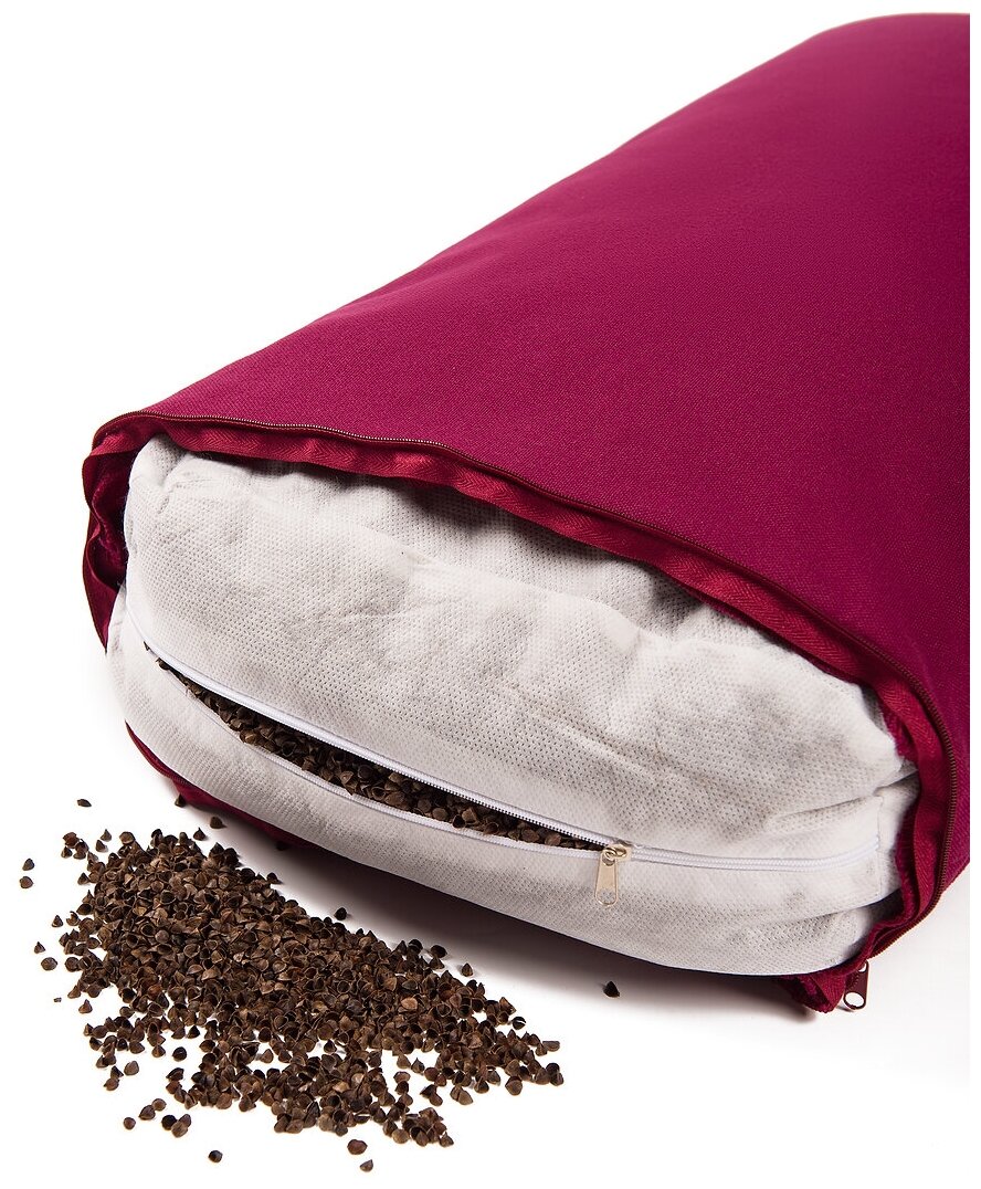 Подушка для йоги медитации BIO-TEXTILES Болстер релакс прямоугольный 62*32*14 бордовая с лузгой гречихи массажная спортивная ортопедическая интересное:
