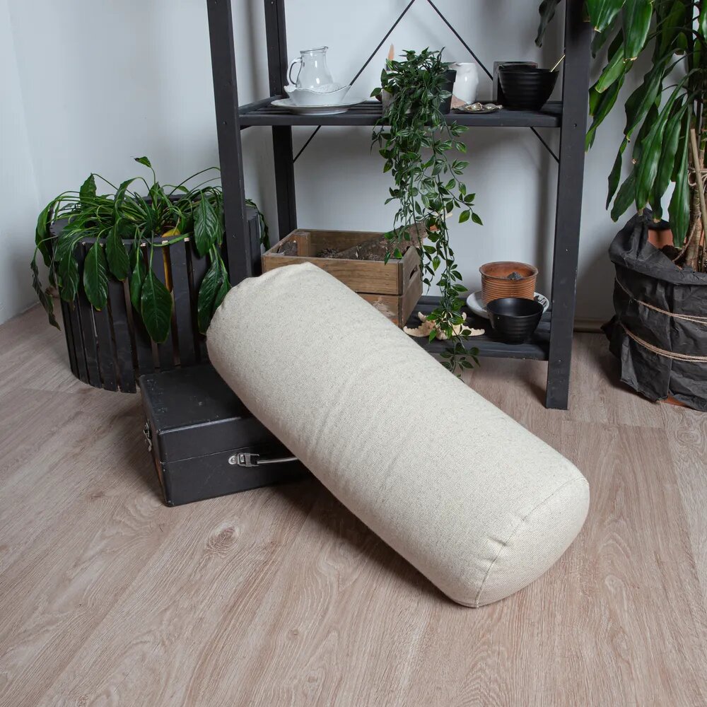 Болстер для йоги Asana Comfort, валик с лузгой гречихи, 60x20, натуральный лён