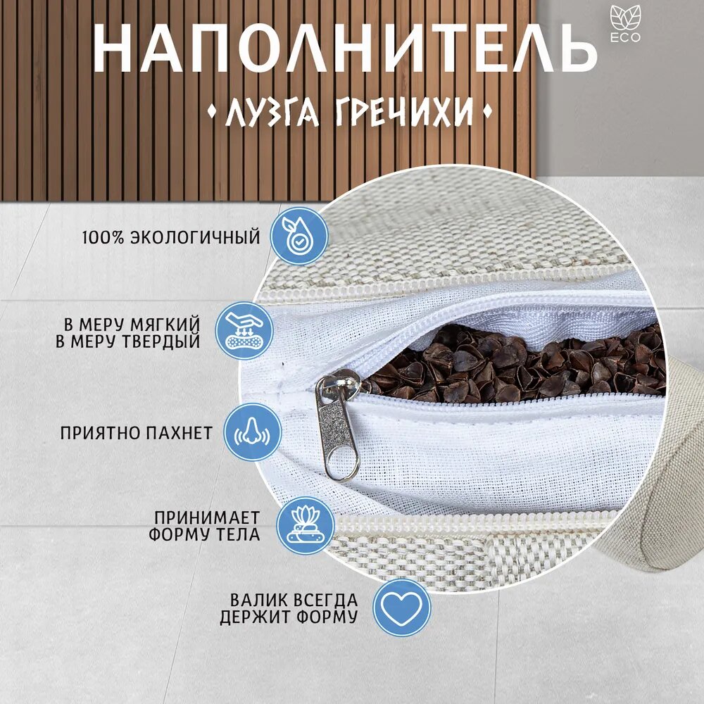 Комплект болстеров для йоги, валики с лузгой гречихи, 60x20, 40х12, натуральный лён интересное: