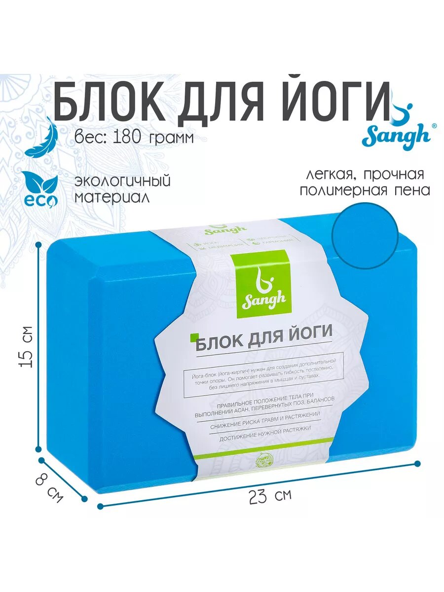 Купить Блок Sangh, для йоги, размер 23 х 15 х 8 см, вес 180 г, цвет синий
