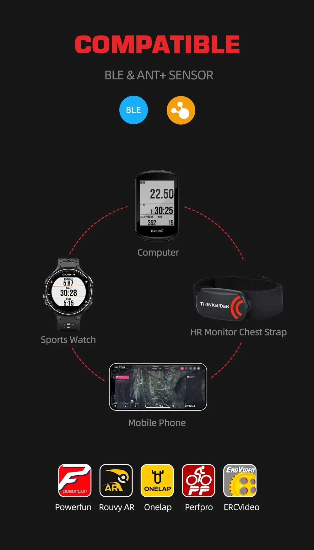 Нагрудный ремень для монитора сердечного ритма ThinkRider ANT + BLE 4,0 интересное: