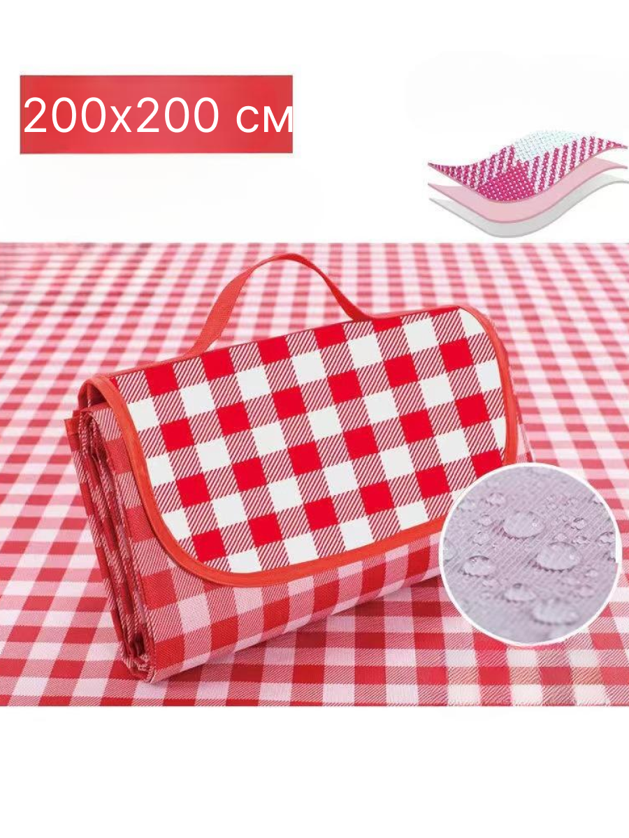 Непромокаемый складной туристический коврик для пляжа и пикника 200х200 см, красный интересное: