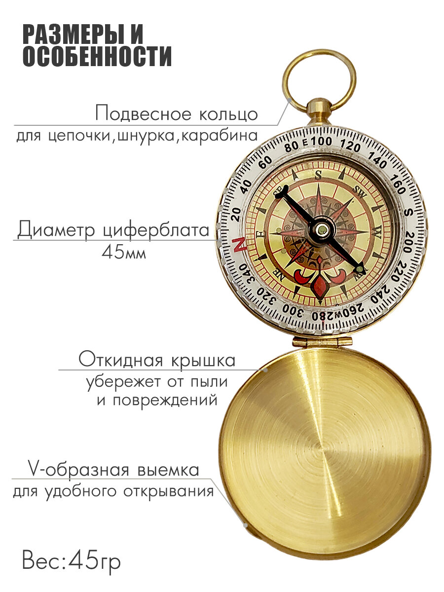 Компас "Ретро часы" SOLARIS, Латунь интересное: