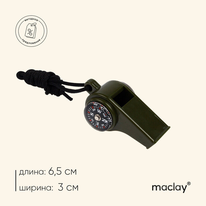 Компас-свисток Maclay, размер 6,5 х 3 см, цвет зеленый интересное: