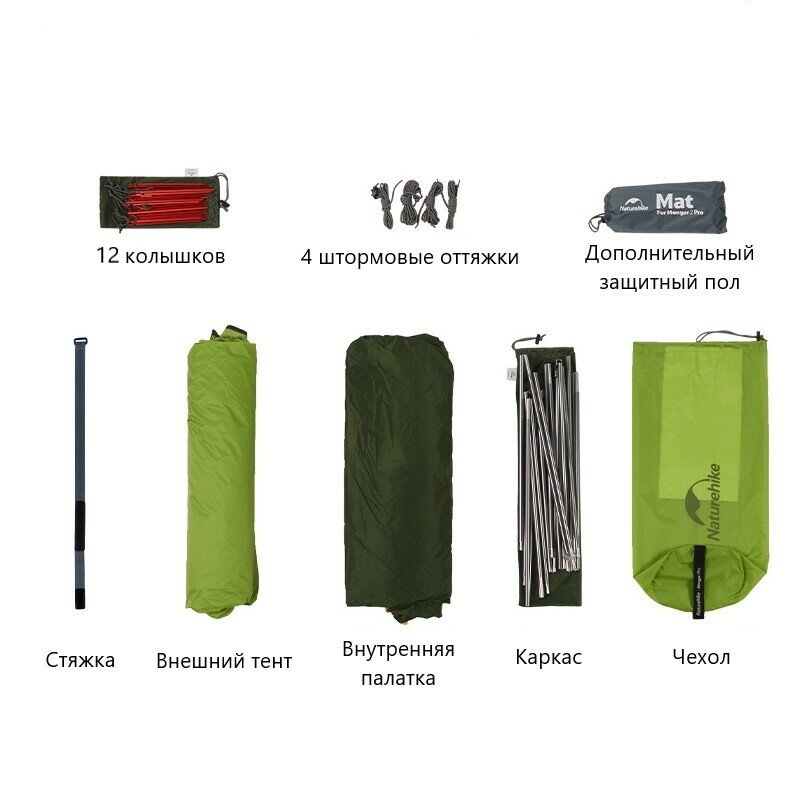 Палатка туристическая Naturehike Mongar 2 PRO (Горчично-зеленая) интересное: