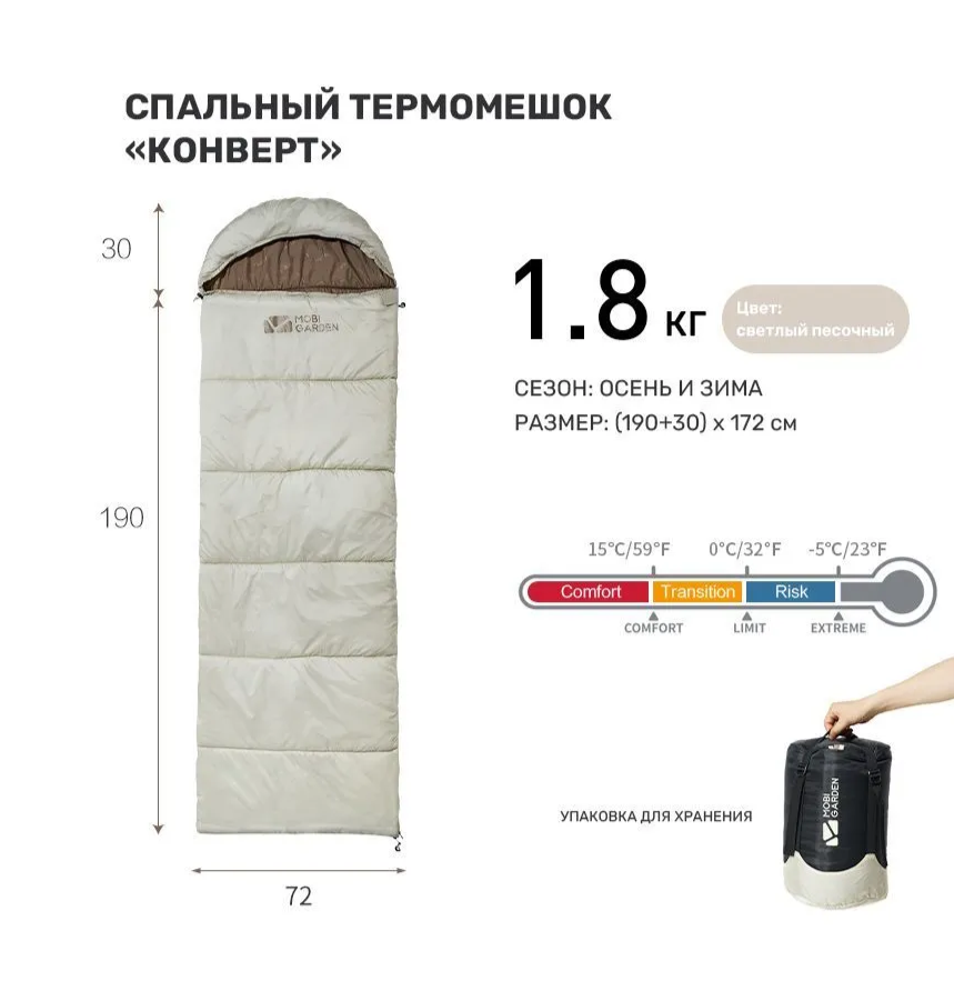 Спальный мешок MOBI GARDEN Облако 1.4. Цвет - светлый песочный интересное: