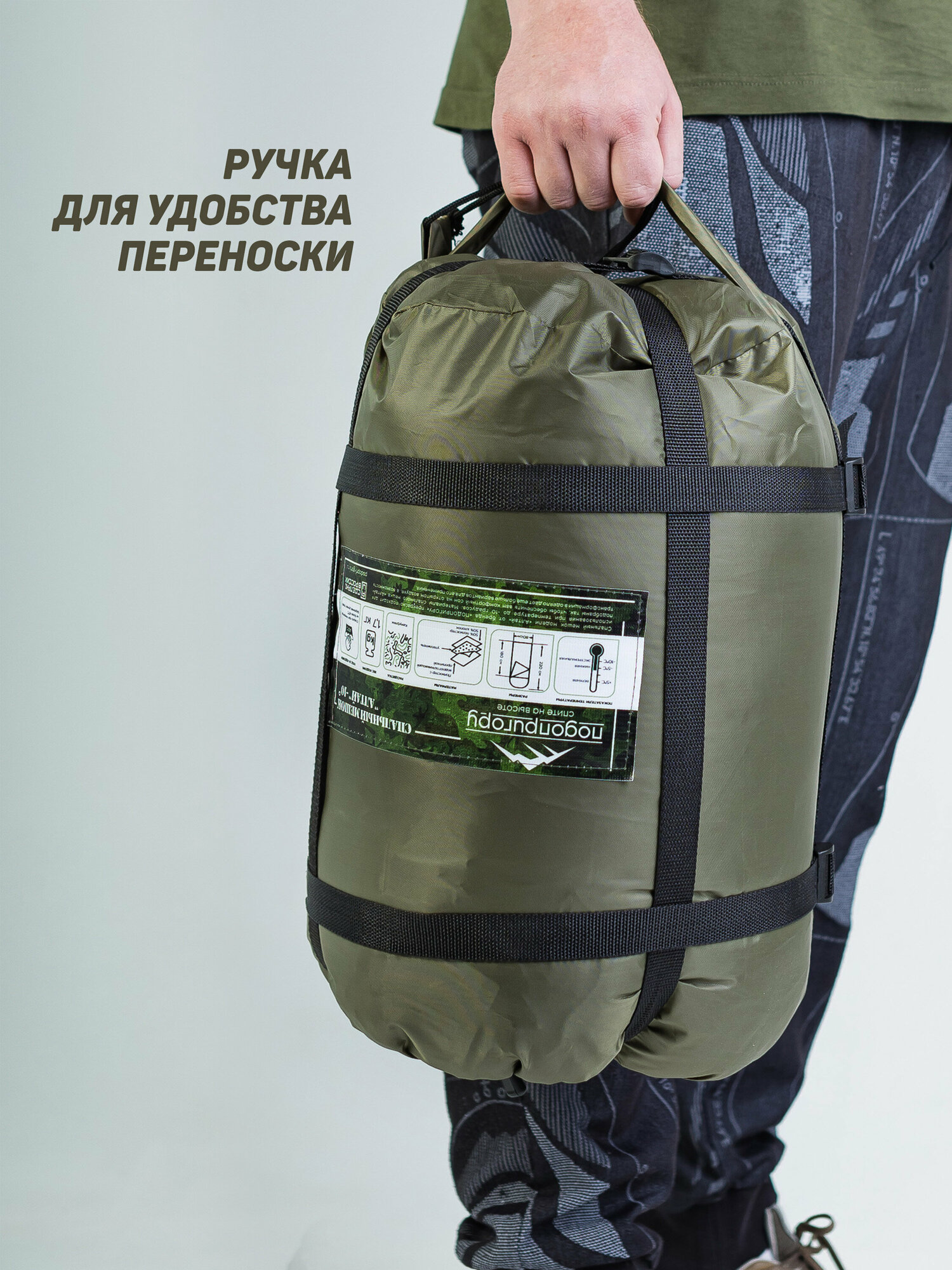 Спальный мешок туристический "Подопригору" -10°C, цвет Хаки (Олива), с подголовником интересное: