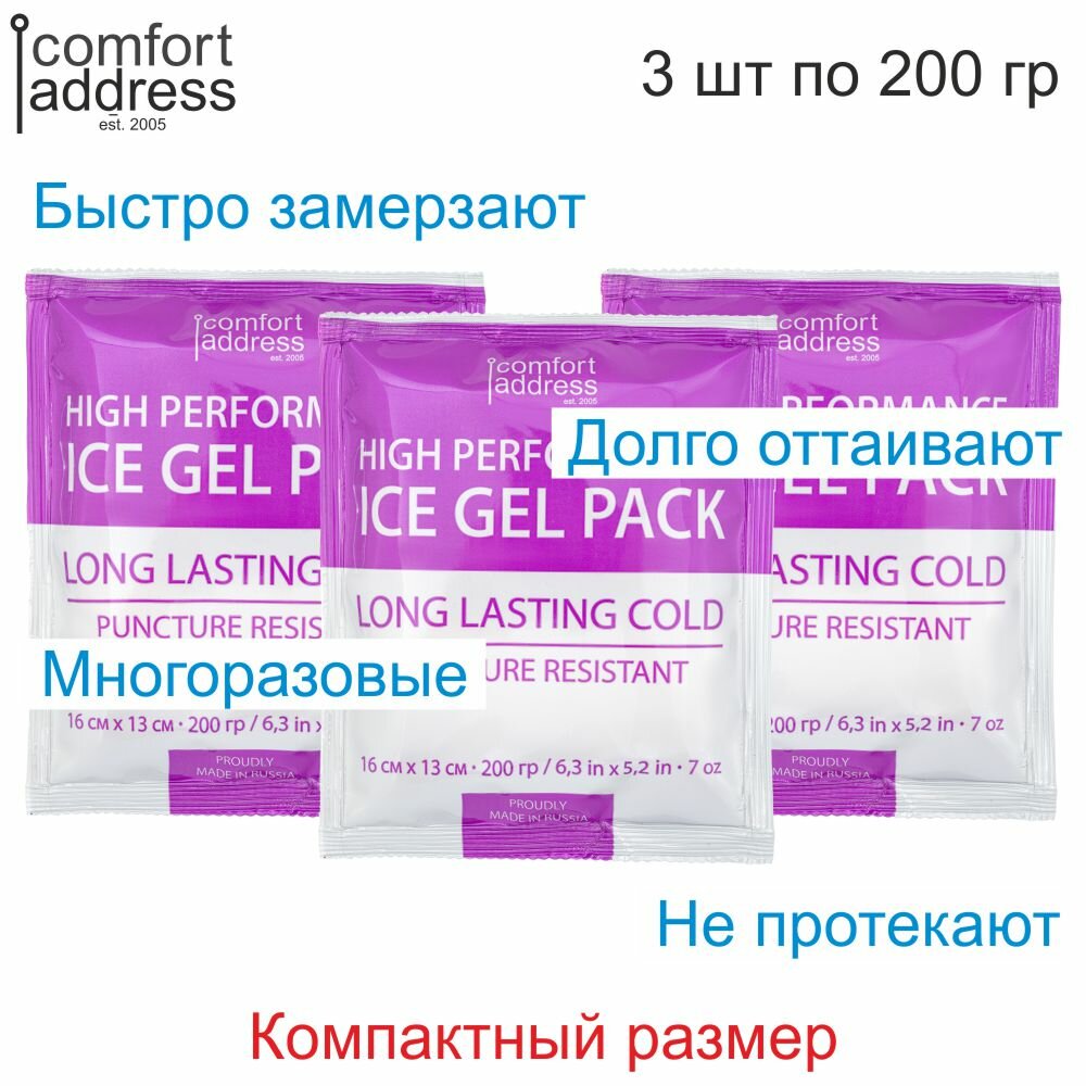 Гелевый аккумуляторов холода 3 шт. по 200 гр. "Comfort Address"