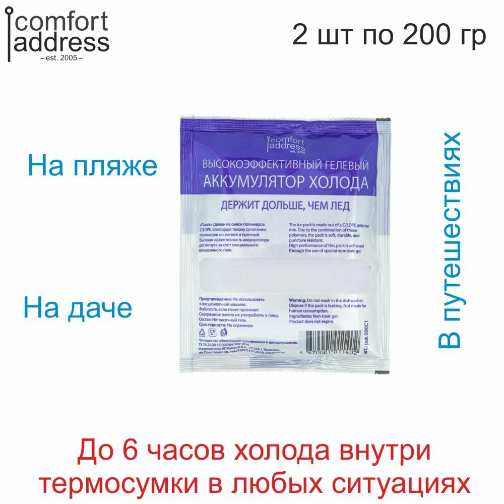 Гелевый аккумуляторов холода 3 шт. по 200 гр. "Comfort Address"