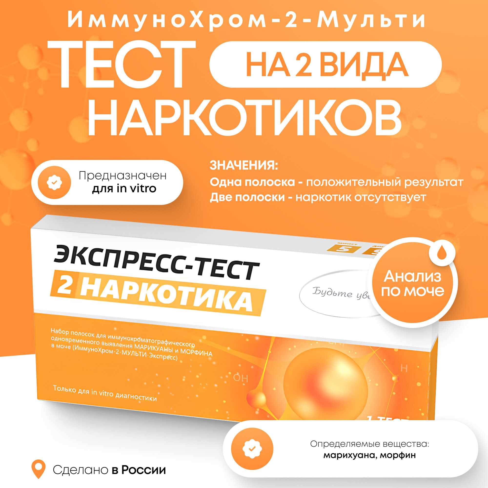 Тест на наркотики ИммуноХром-2-МУЛЬТИ-Экспресс на 2 вида, 1 шт. в инд. уп интересное: