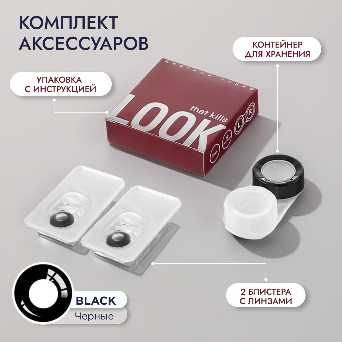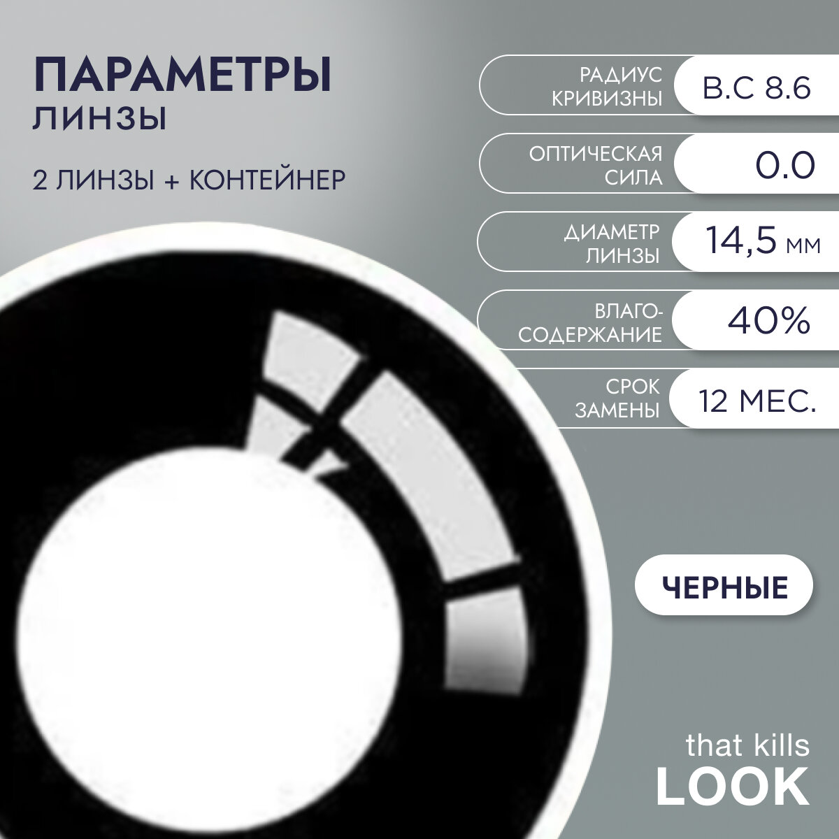 Цветные контактные линзы LOOK that kills черный / 0,00 / 8,6 / 14,5 интересное: