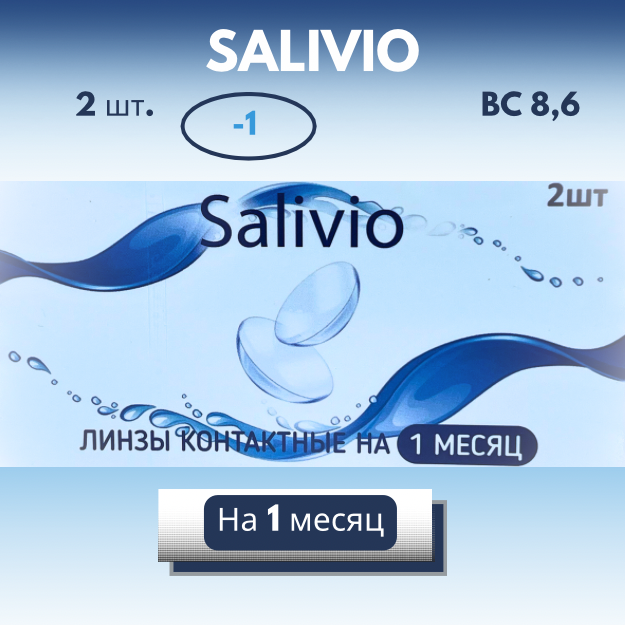 Контактные линзы Salivio -1,0, ежемесячная замена, бесцветные, прозрачные, R 8.6, диаметр 14,2 мм, 2 шт.