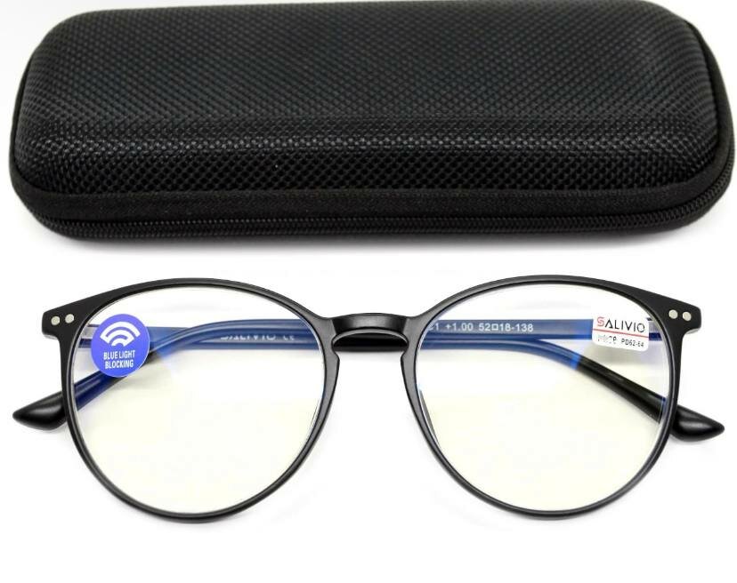 Готовые очки для зрения с диоптриями +1.00 корригирующие очки для чтения круглые, с футляром