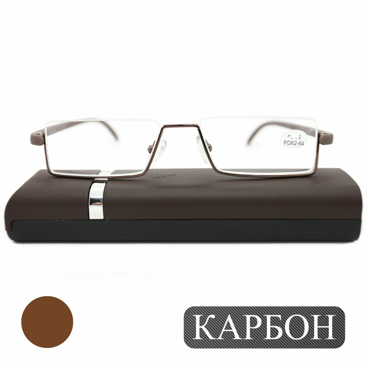 Полуободковые очки узкие для чтения (+1.25) противоударные с футляром, TR747 C4, леска сверху, линза пластик, цвет коричневый, pd 62-64 интересное: