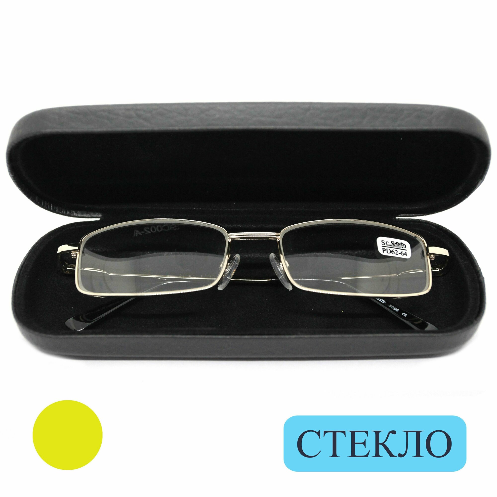 Стильные очки для чтения со стеклом (+1.50) ELITE 5096, линза стекло, цвет золотистый, РЦ62-64, с футляром