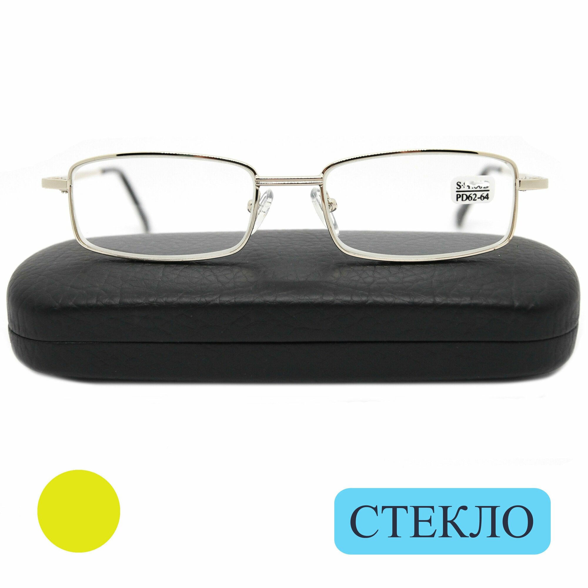 Качественные очки со стеклом коррегирующие (+1.00) ELITE 5096, линза стекло, цвет золотистый, РЦ62-64, с футляром