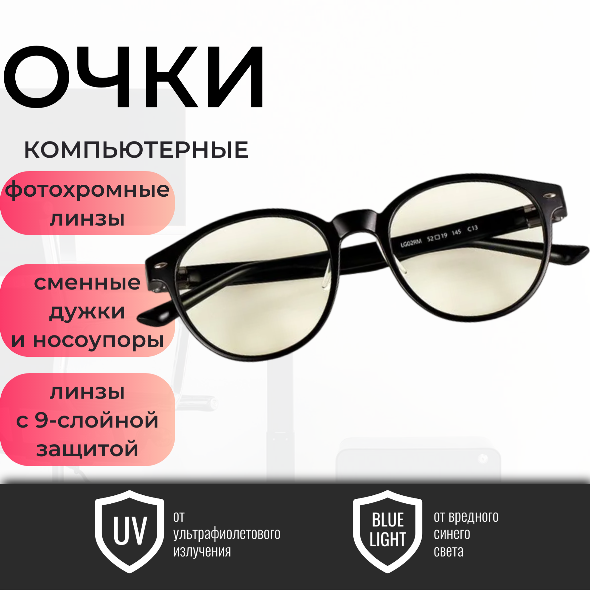 Очки Roidmi "Qukan B1", фотохромные, чёрные, без диоптрий, для компьютера