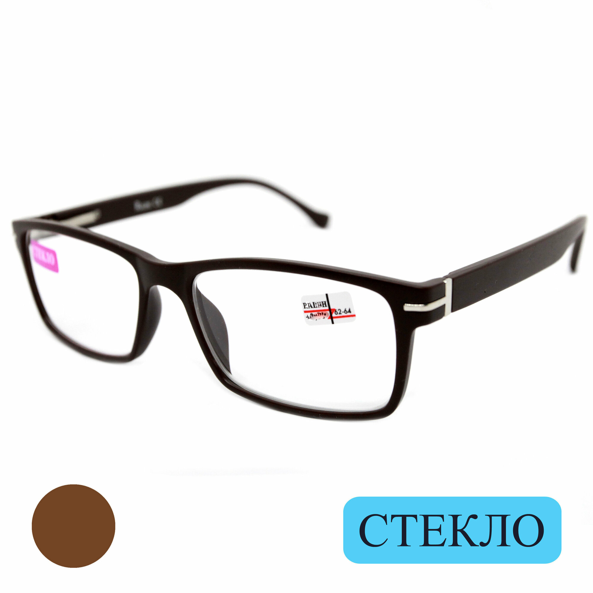 Пластиковые очки мужские со стеклом (+0.50) с футляром, RALPH 0468 C3, линза стекло, цвет коричневый, РЦ 62-64
