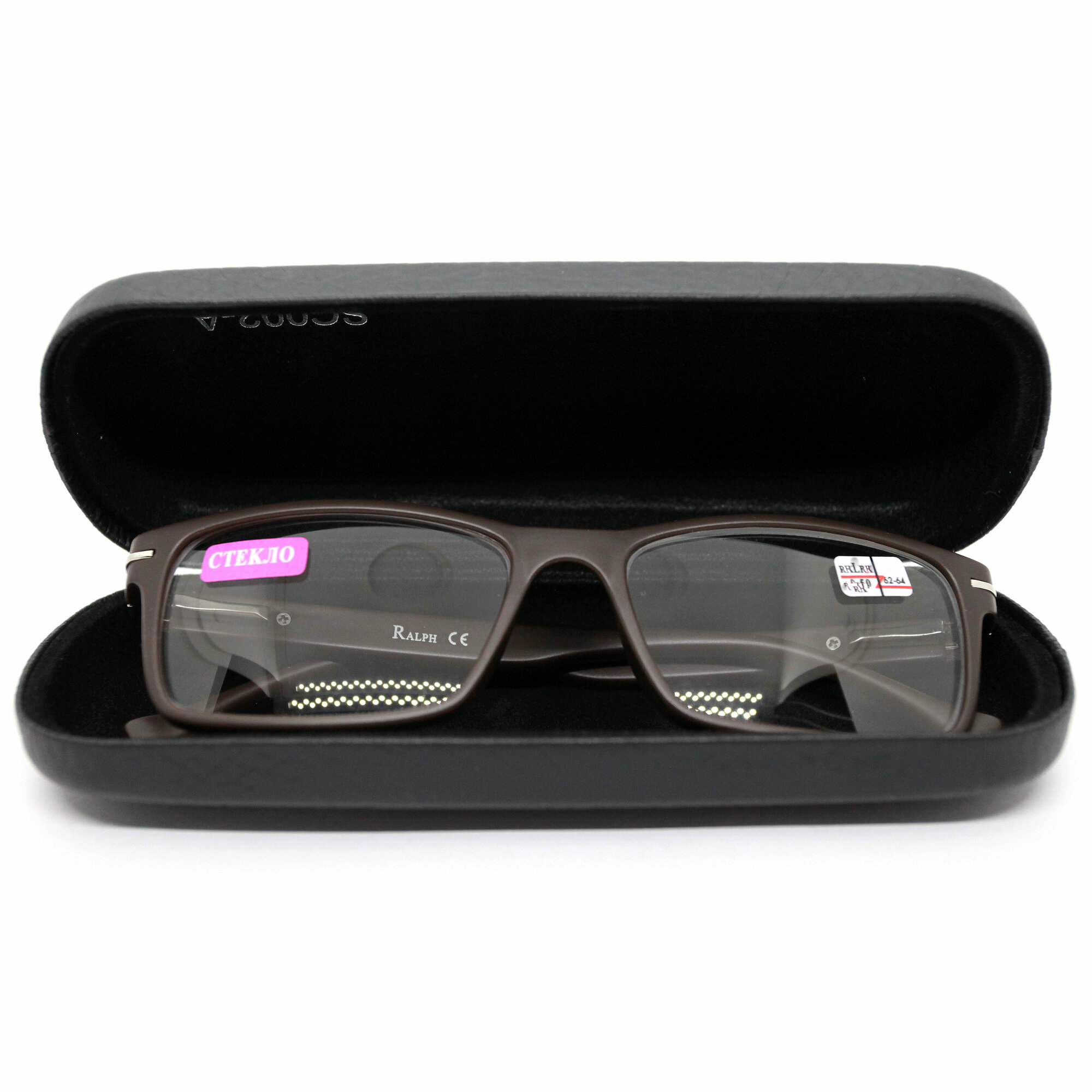 Пластиковые очки мужские со стеклом (+0.50) с футляром, RALPH 0468 C3, линза стекло, цвет коричневый, РЦ 62-64