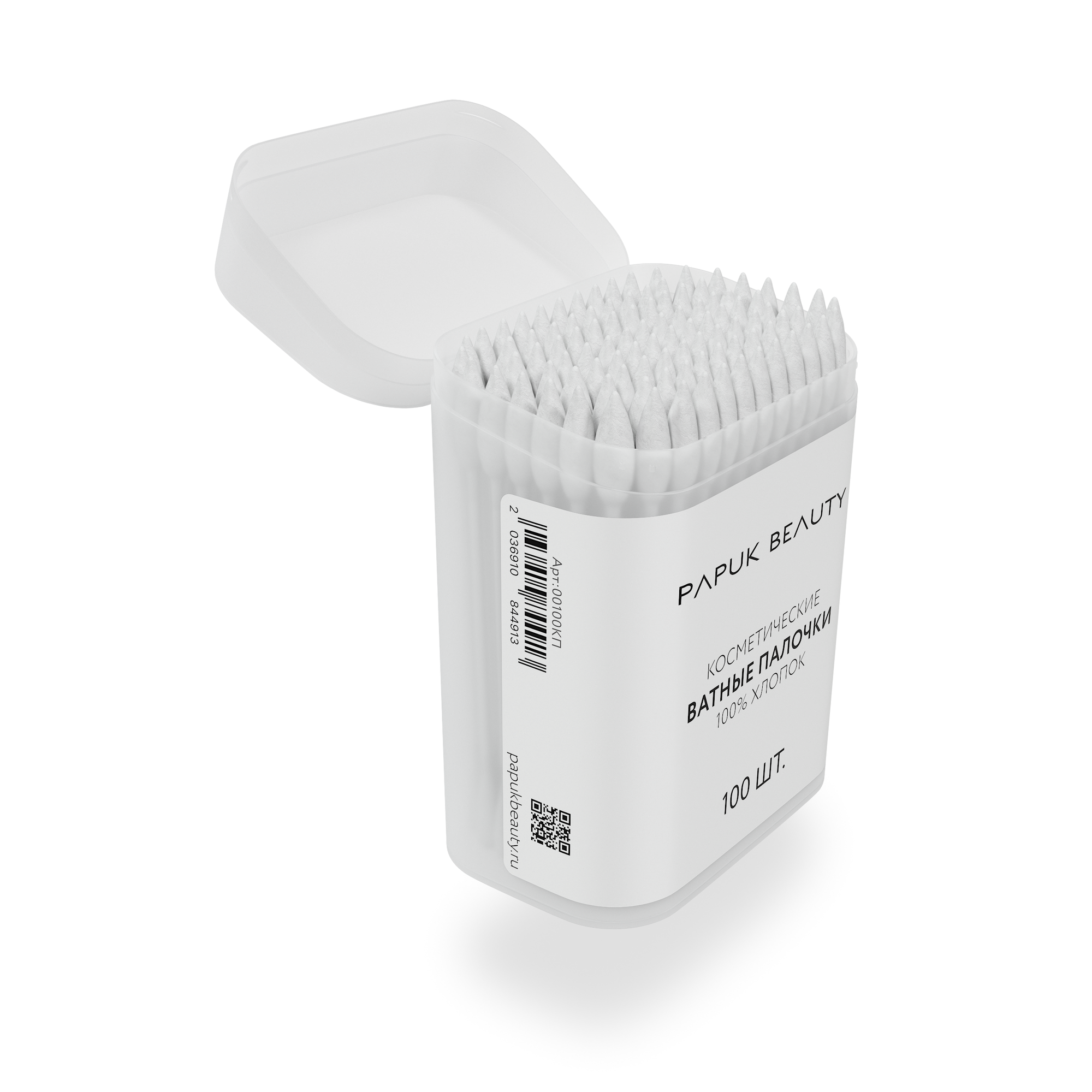 Ватные палочки для макияжа и маникюра Papuk Beauty, 100 штук, двухсторонние