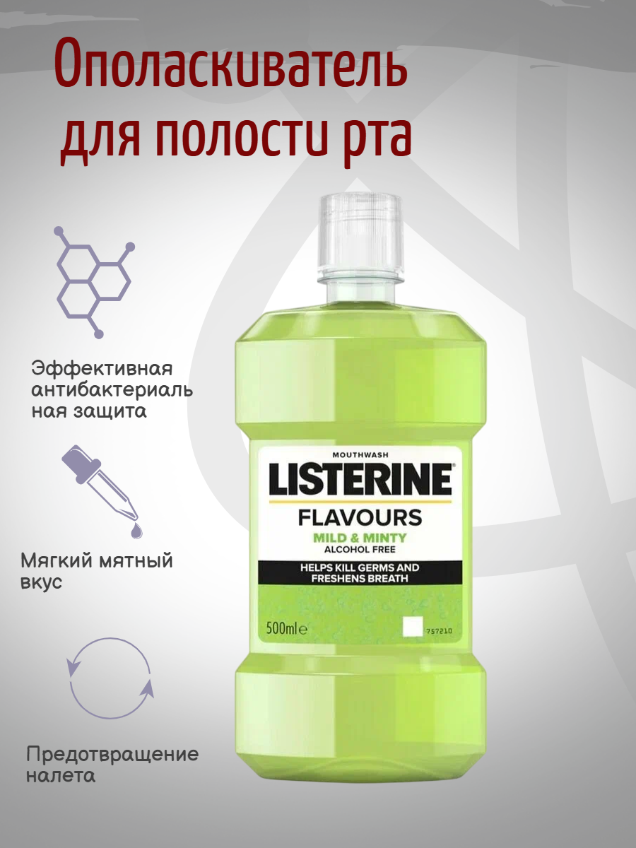 Ополаскиватель для полости рта LISTERINE FLAVOURS Mild & Minty (мягко-мятный вкус), 500 мл интересное: