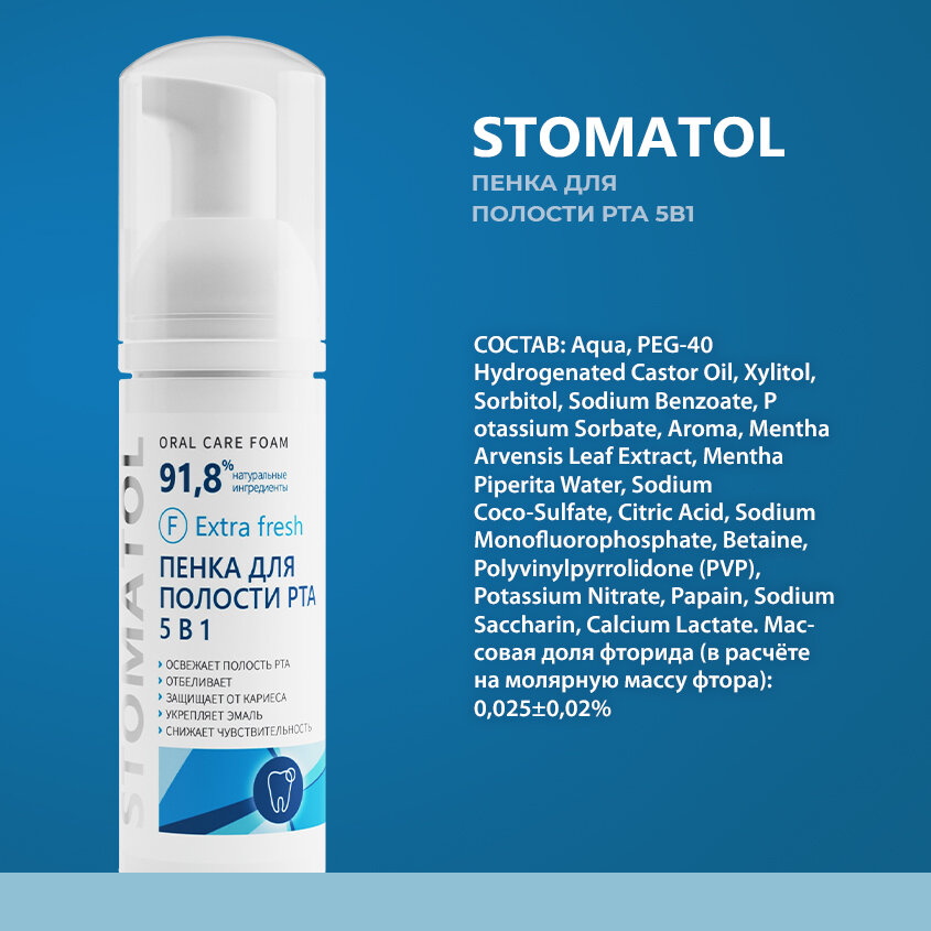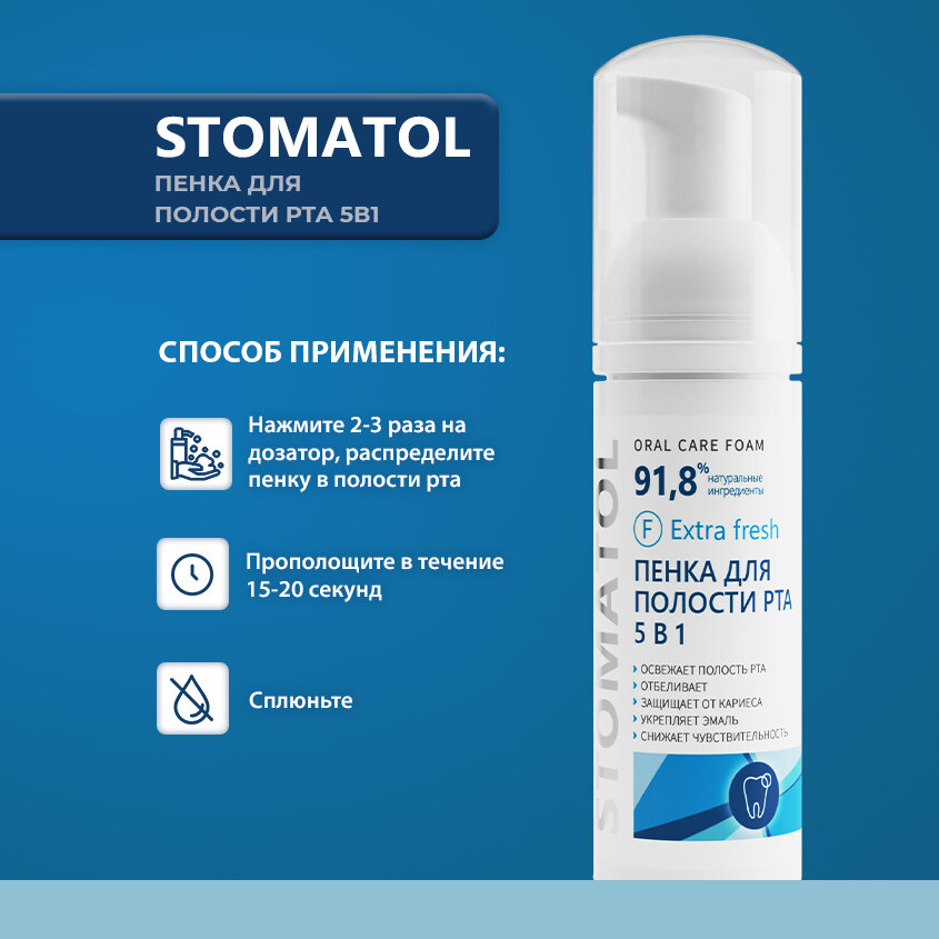 Очищающая пенка для зубов и десен 5в1 STOMATOL Extra Fresh против устойчивого неприятного запаха изо рта 50мл интересное: