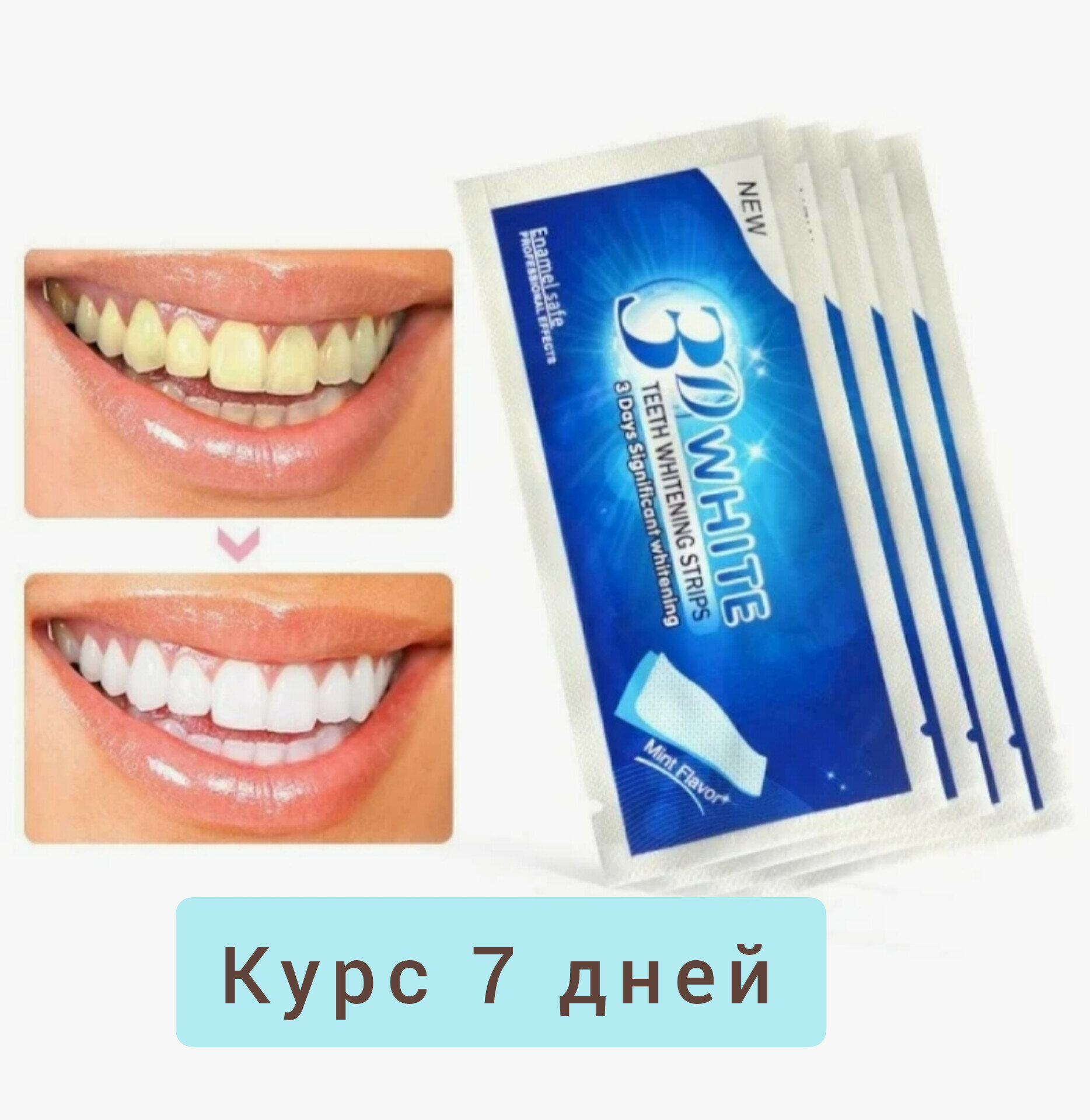 Купить Отбеливающие полоски для зубов 3D WHITE Gel в упаковке 7 пар, в каждой 1 верхняя (более длинная) и 1 нижняя полоска
