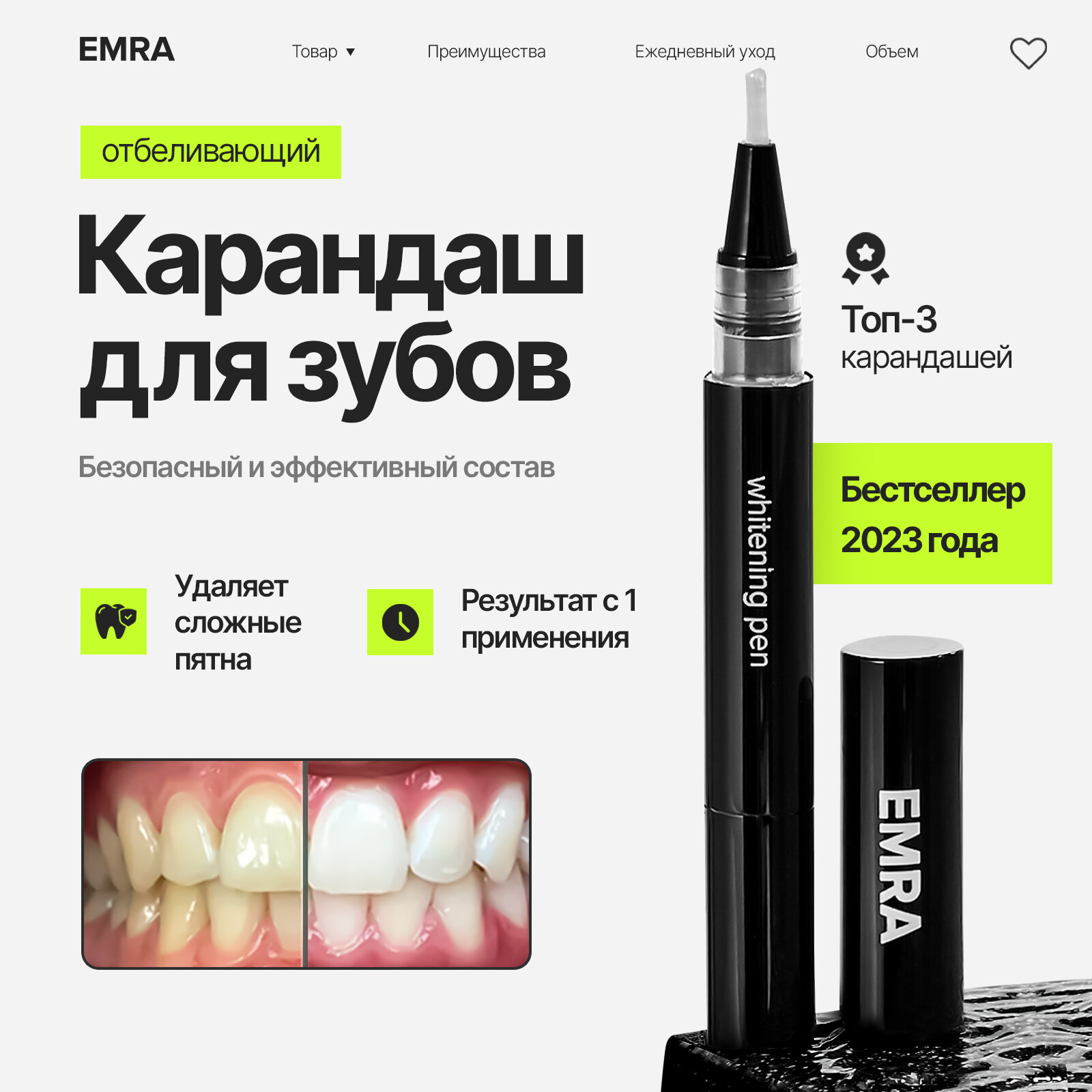 Безопасный отбеливающий карандаш для зубов EMRA интересное: