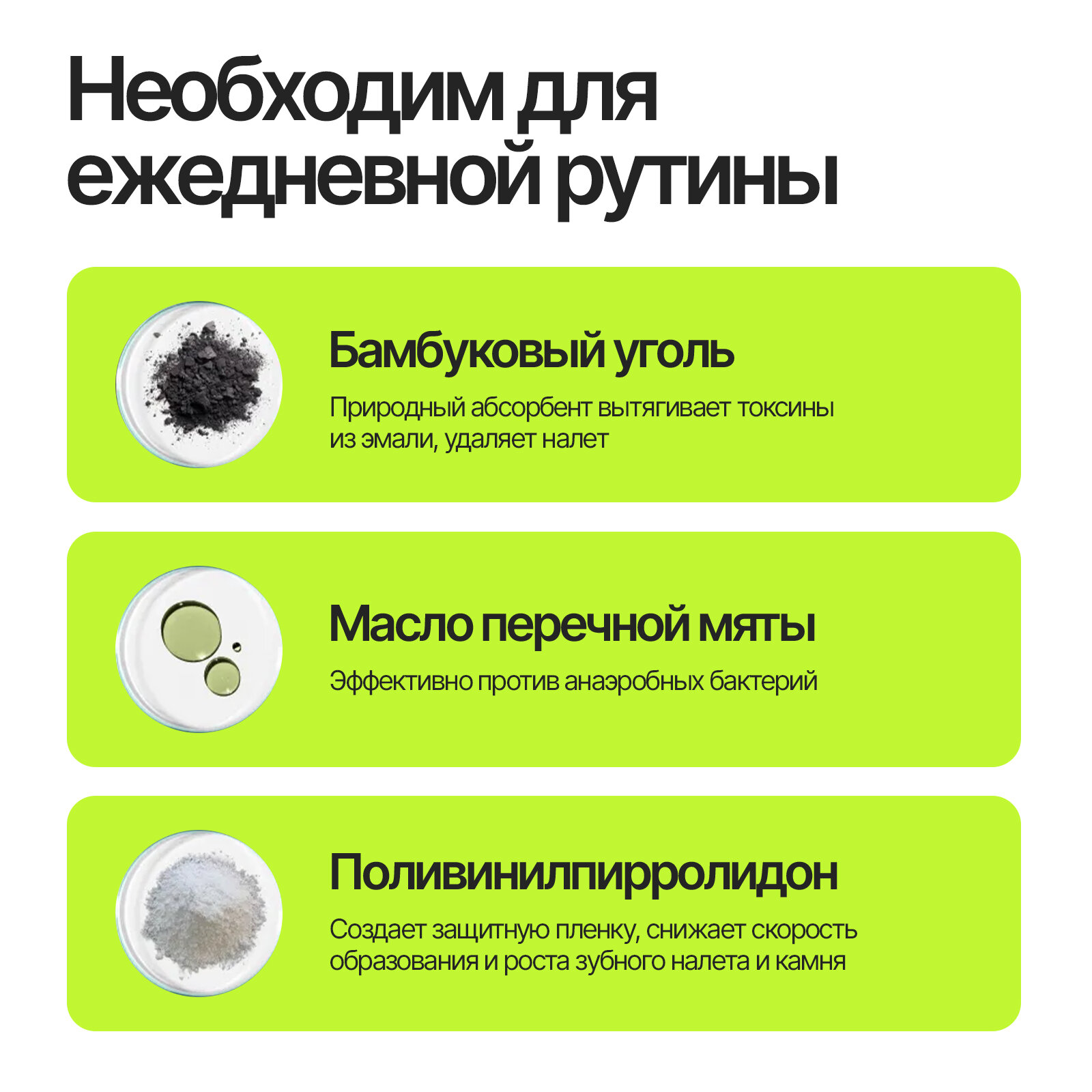 | Состав | состав: Вода, бамбуковый уголь, органическое кокосовое масло extra virgin 100%, пропиленгликоль, поливинилпирролидон, арома, полисорбат-20, стевиозид, феноксиэтанол, сорбитол, эфирное масло чайного дерева, эфирное масло перечной мяты, этилгексилглицерин. |