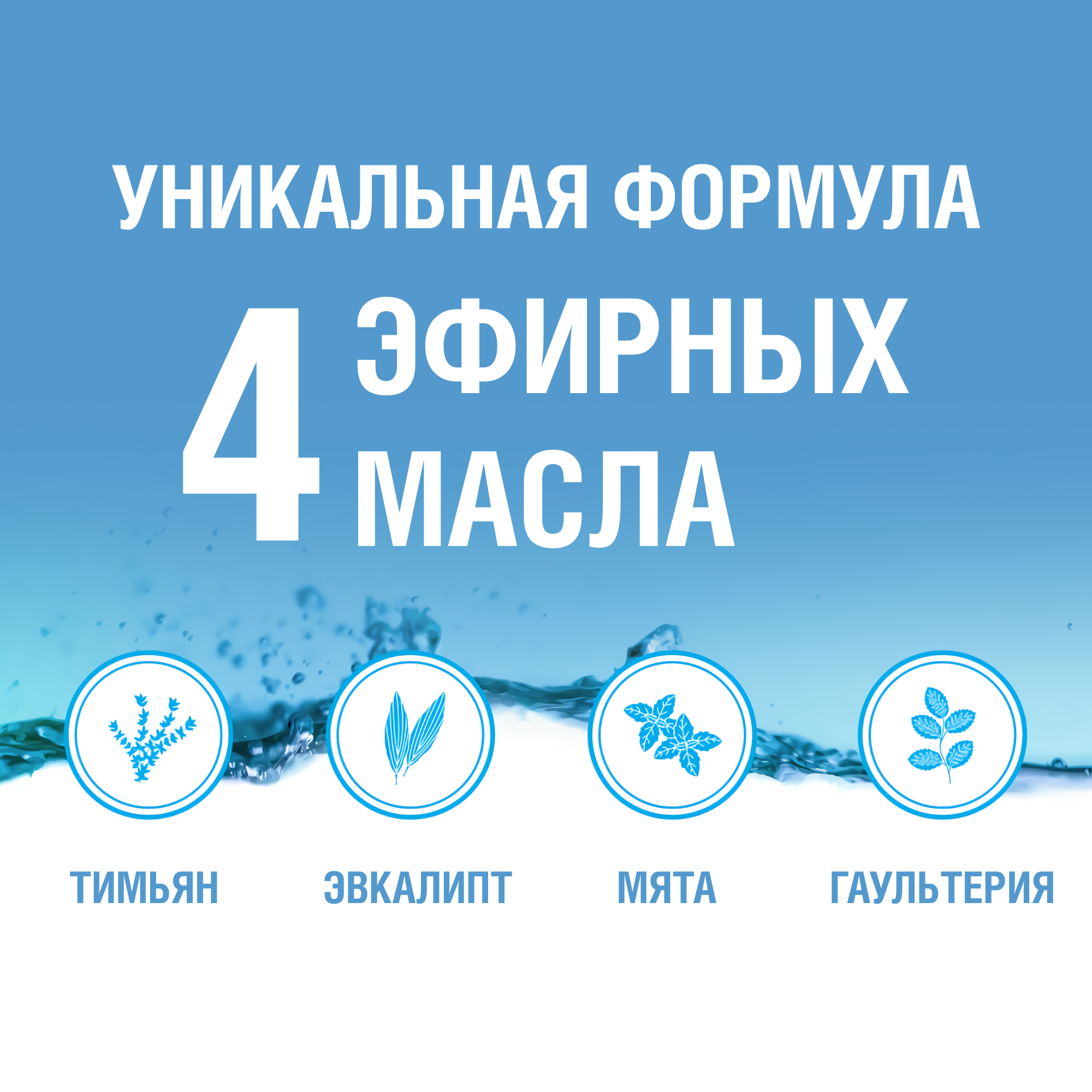 | Состав | Aqua, Benzyl Alcohol, Sorbitol, Propylene Glycol, Sodium Lauryl Sulfate, Poloxamer 407, Benzoic Acid, Zinc Chloride, Eucalyptol, Methyl Salicylate, Thymol, Sodium Saccharin, Sodium Fluoride, Sodium Benzoate, Menthol, Aroma, Sucralose, CI 47005, CI 42053. Содержит фторид натрия (220 ppm F). |