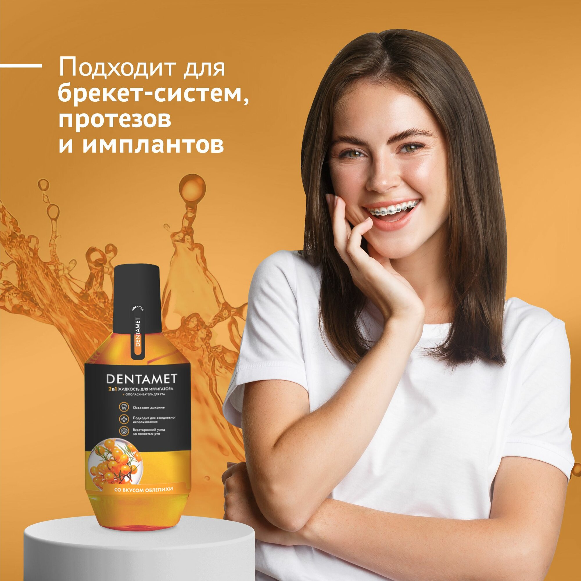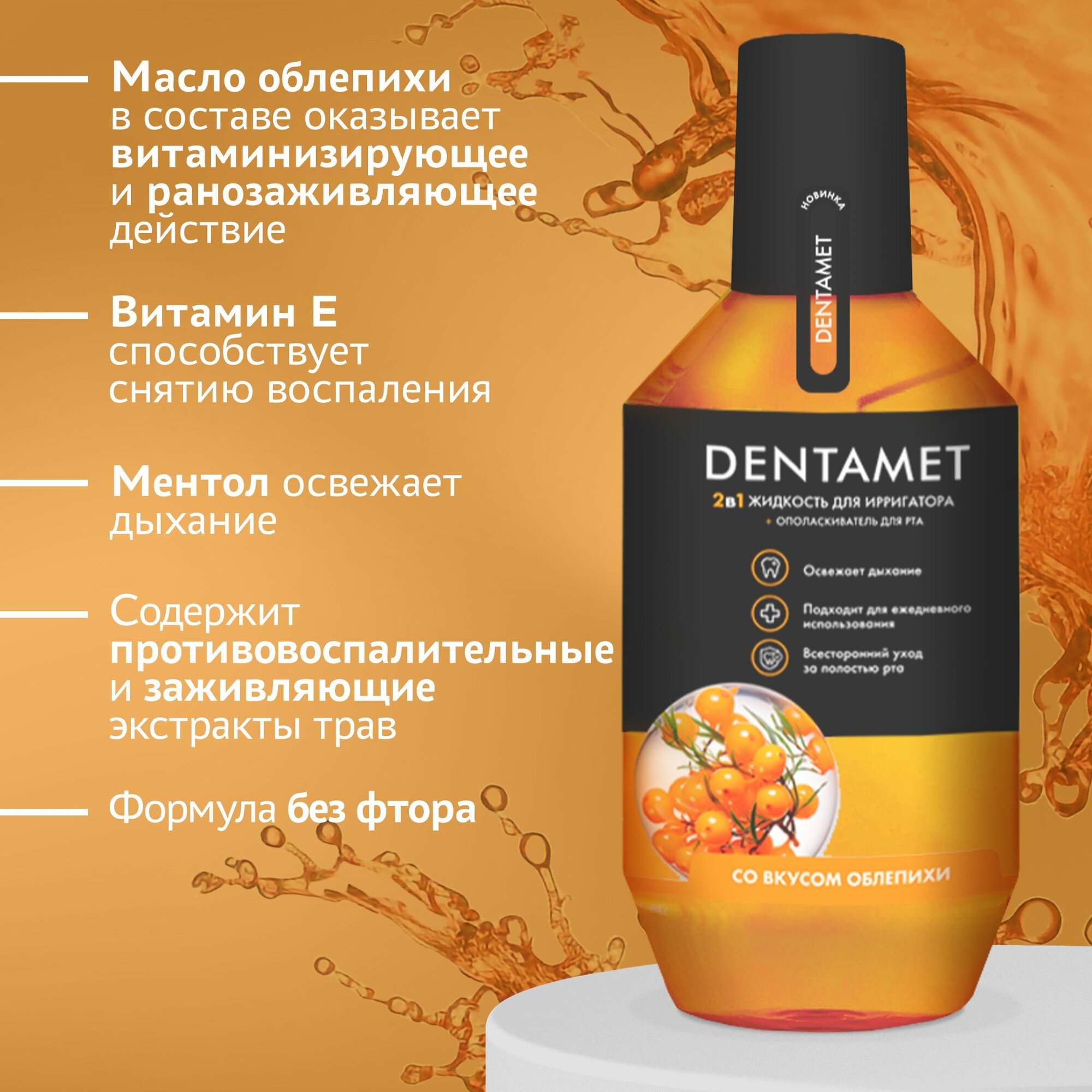 Средство 2в1 для гигиены полости рта со вкусом облепихи DENTAMET: Жидкость для ирригатора и Ополаскиватель 580 мл интересное: