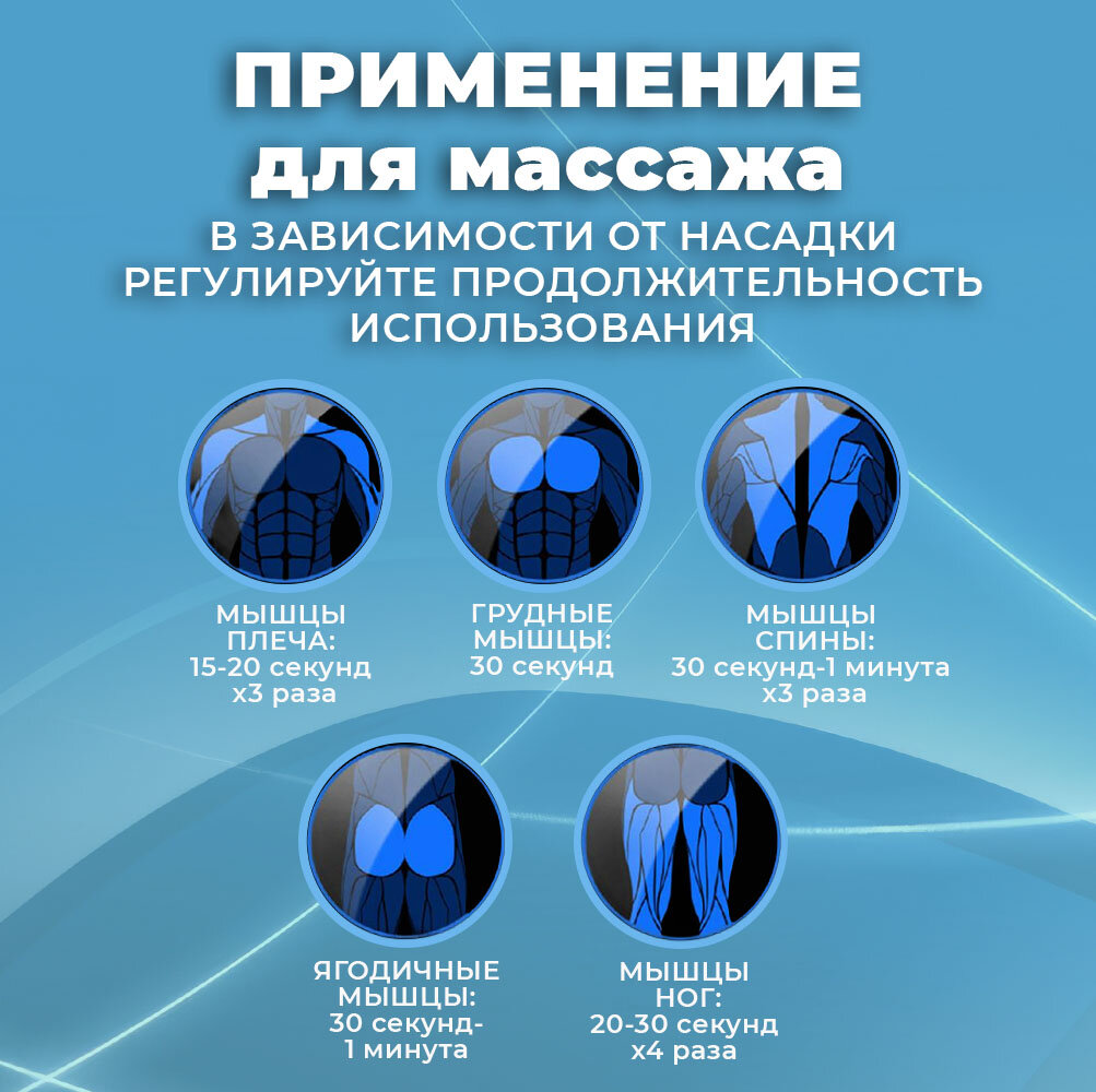 | Вид массажа | вибрационный / комбинированный / механический / перкуссионный / расслабляющий |