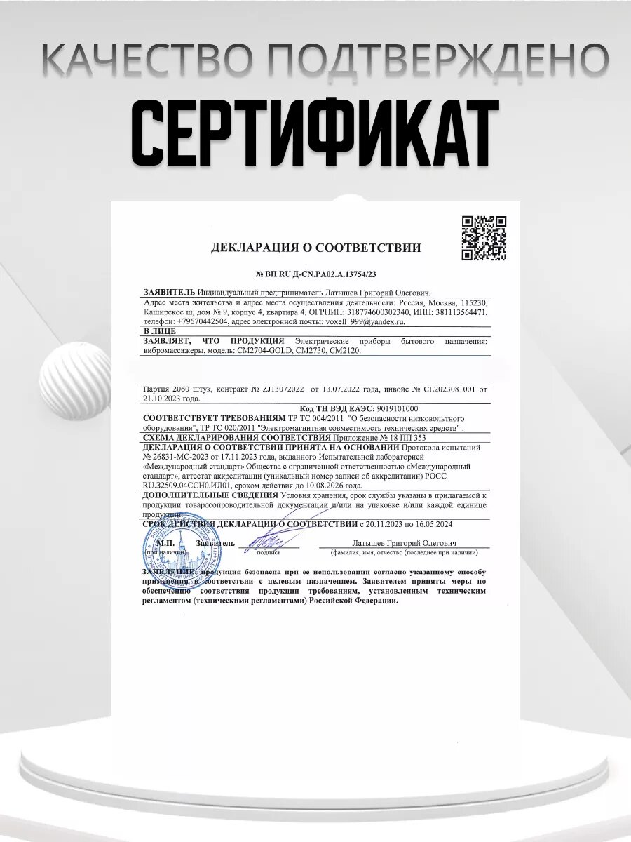 | Вид массажа | акупунктурный / вакуумный / вибрационный / комбинированный |
