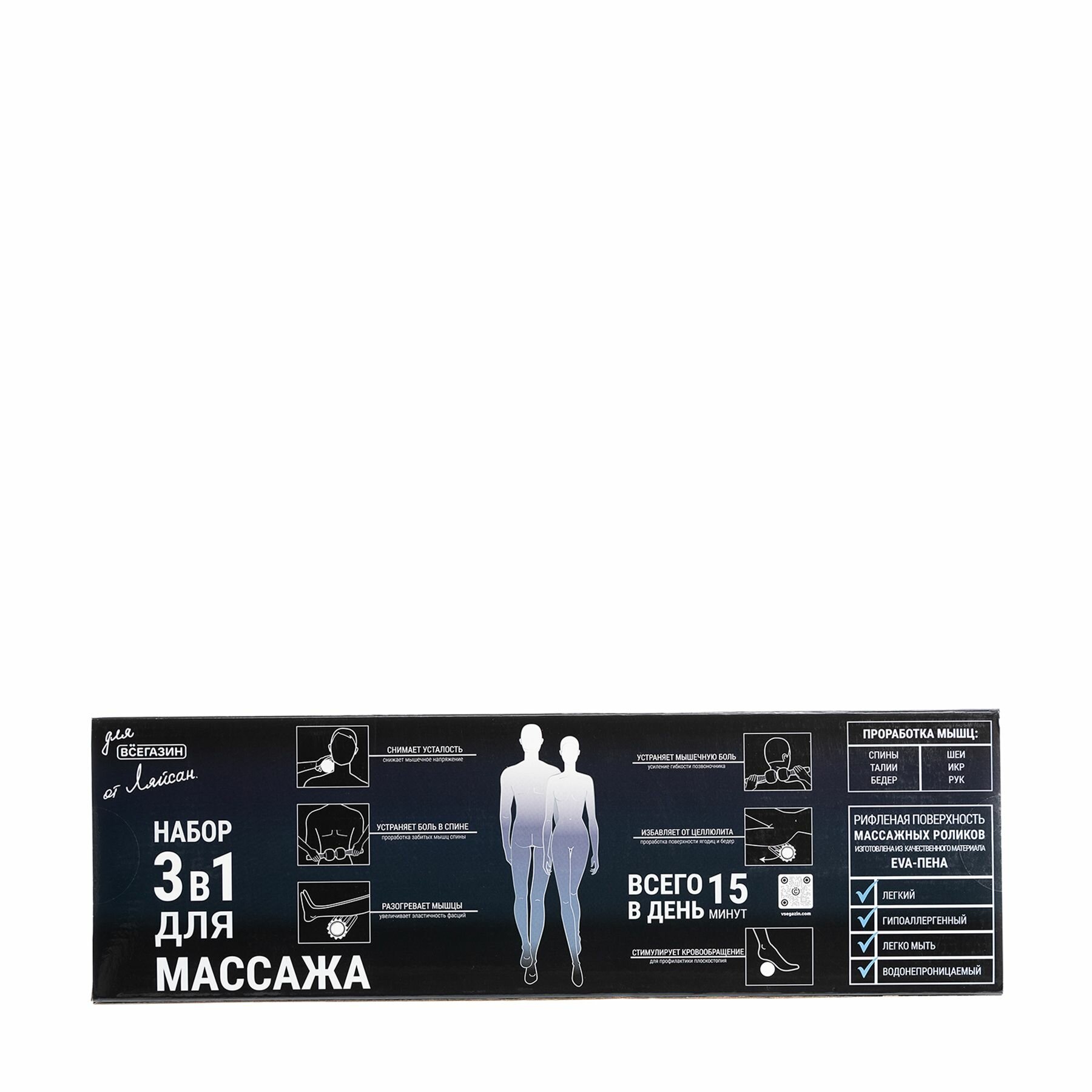 | Дополнительная информация | Всёгазин представляет набор для массажа из трех предметов, изготовленных из качественных и безопасных материалов. В набор входят: Валик размером 45x14 см - помогает снять напряжение в мышцах и улучшить кровообращение. Изготовлен из EVA (этиленвинилацетат) - легкого и прочного материала, который обеспечивает комфорт при использовании.Ролик длиной 29 см - используется для глубокого массажа мышц и улучшения их тонуса. Изготовлен из PVC (поливинилхлорида) - материала, обладающего высокой прочностью и устойчивостью к воздействию влаги. Мячик диаметром 7 см - применяется для массажа ладоней, стоп и других участков тела. Изготовлен из PP (полипропилена) - гипоаллергенного материала, который легко моется и не впитывает запахи. Все предметы набора легко моются и могут использоваться как для личного массажа, так и в качестве спортивных аксессуаров. Набор поможет улучшить самочувствие, снять усталость и напряжение в мышцах после физических нагрузок. |