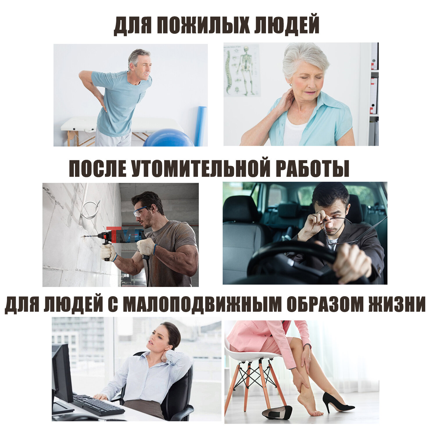 | Зона массажа | бедра / голени / голова / живот / лодыжки / ноги / плечи / поясница / пресс / руки / спина / талия / тело / шея / ягодицы |
