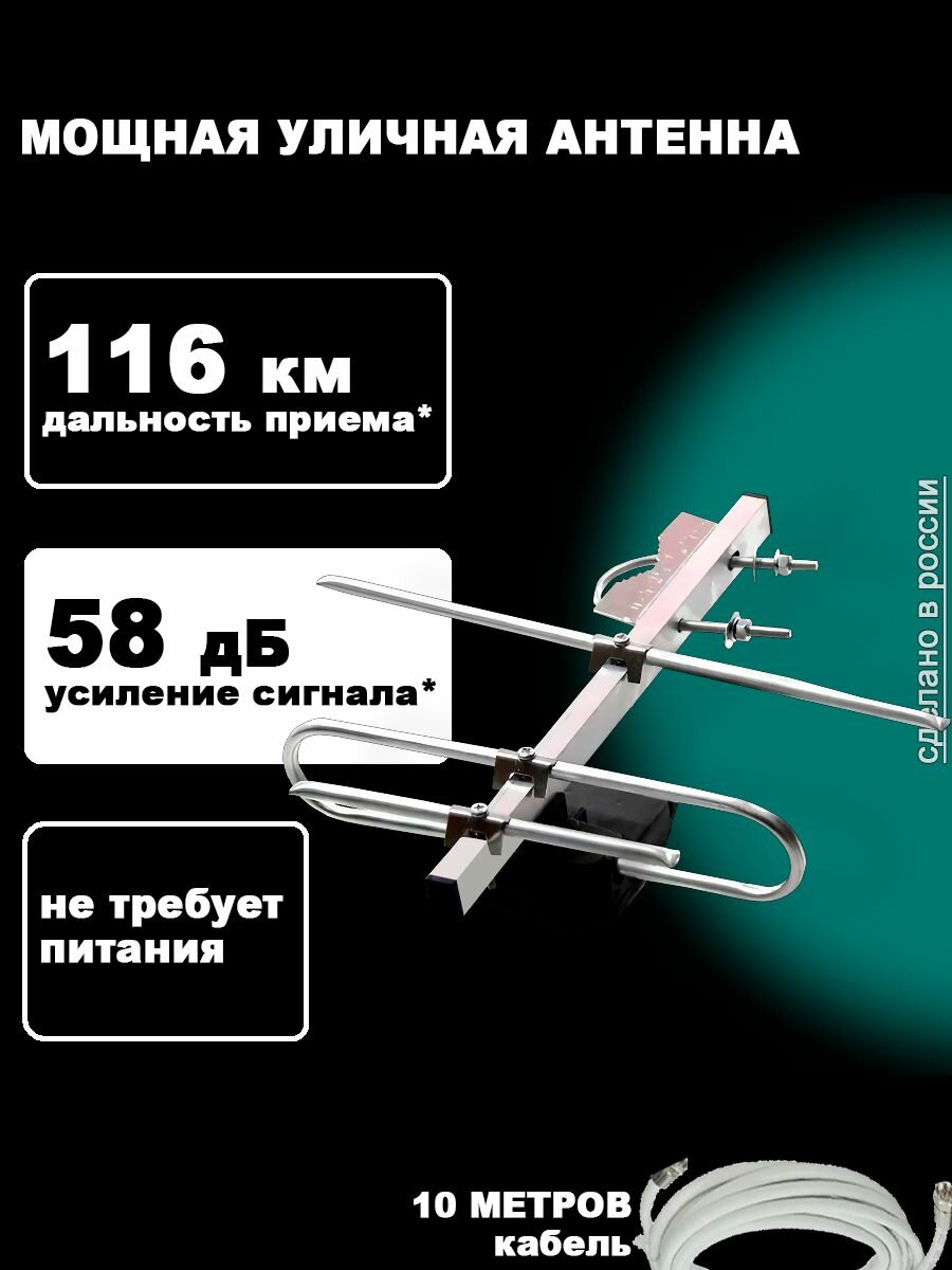 "Комплект для цифрового ТВ: Уличная антенна Мир 12 с кабелем, с усилителем 9001 777, блоком питания и кронштейном" / антена для телевизора