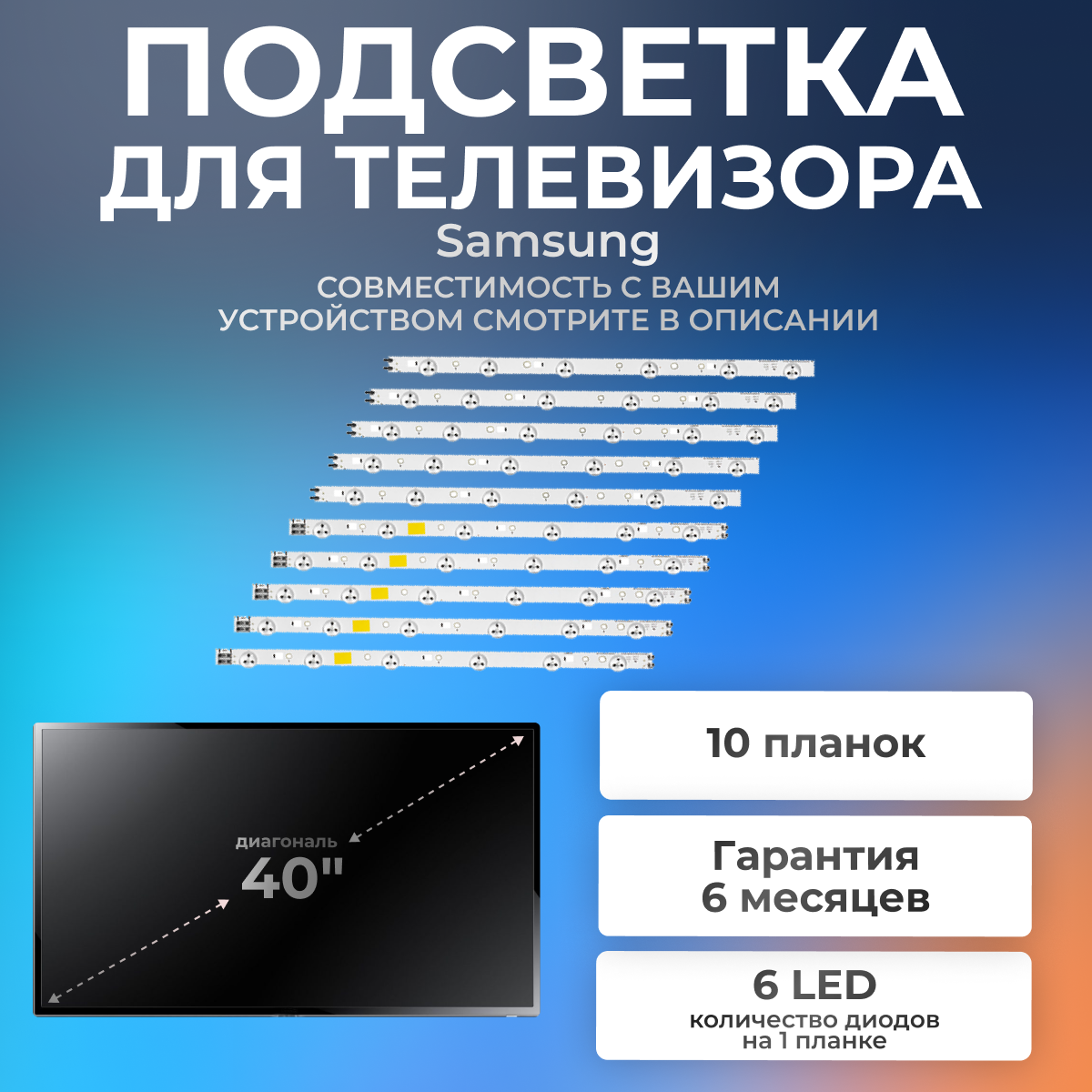 Подсветка 40-3535LED-60EA для телевизора Samsung UE40EH5007K, UE40EH5307K, UE40EH5057K, UE40EH5307 / 3V 12 led (комплект 10 шт) интересное: