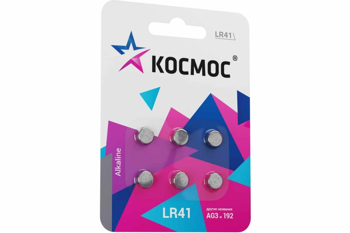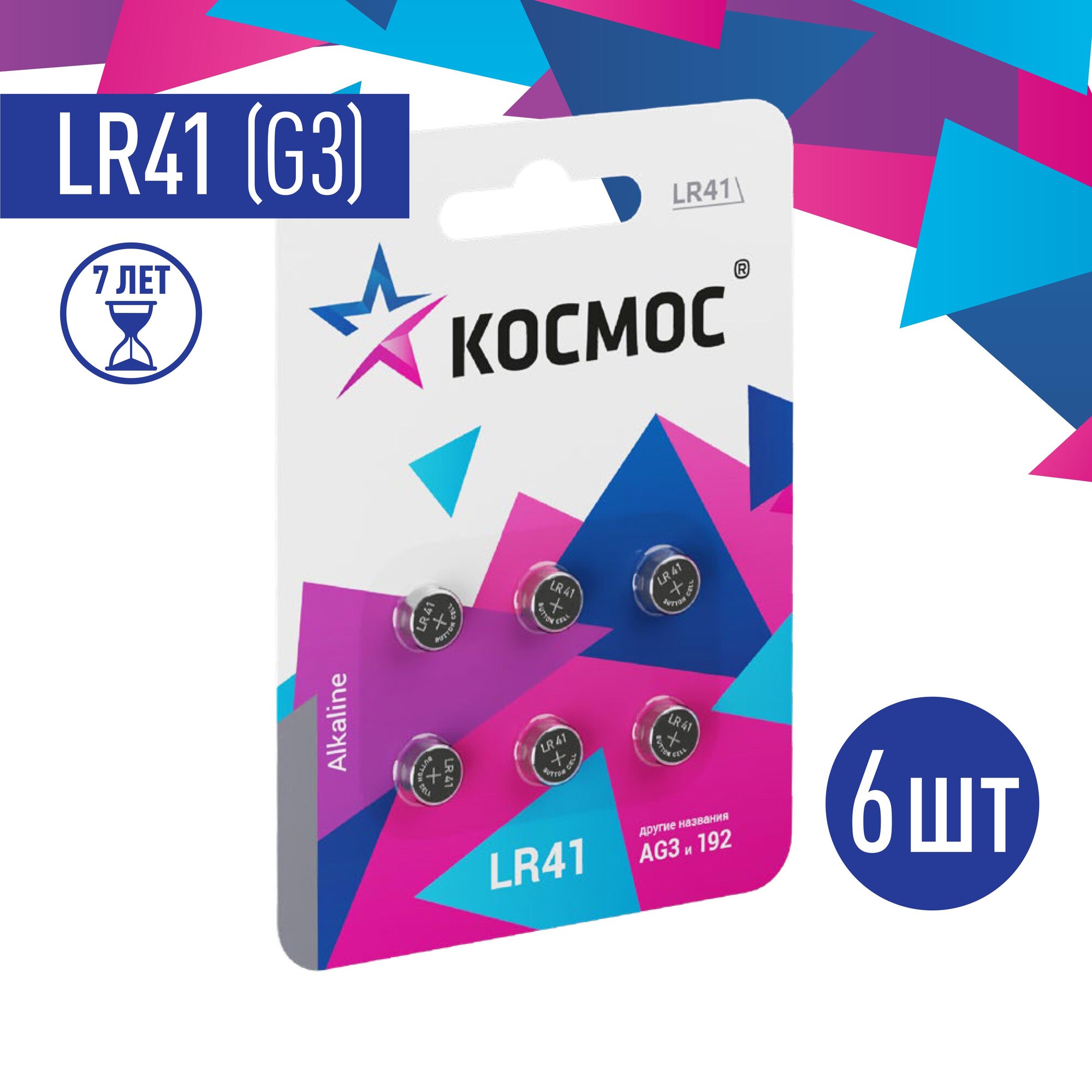 Купить Батарейки LR41 (L736, AG3, 192, 392) 1,5v 6шт. Космос