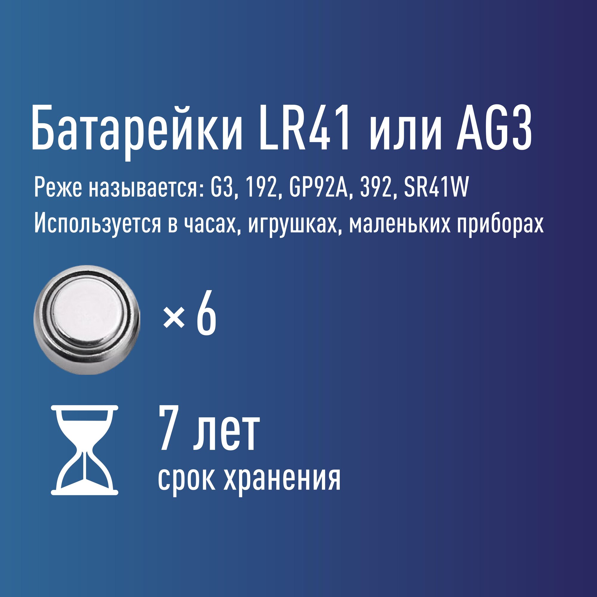 Батарейки LR41 (L736, AG3, 192, 392) 1,5v 6шт. Космос интересное: