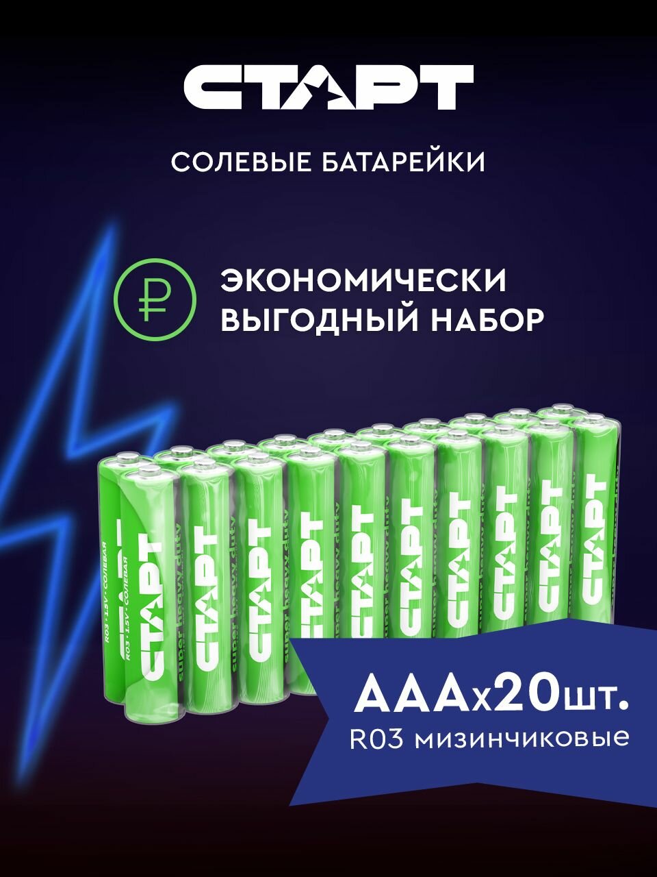 Купить Батарейки солевые старт R03-B20, ААА, 20 штук