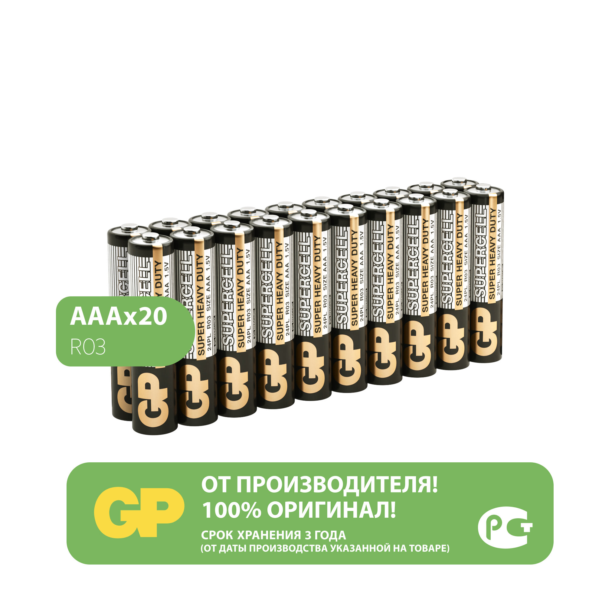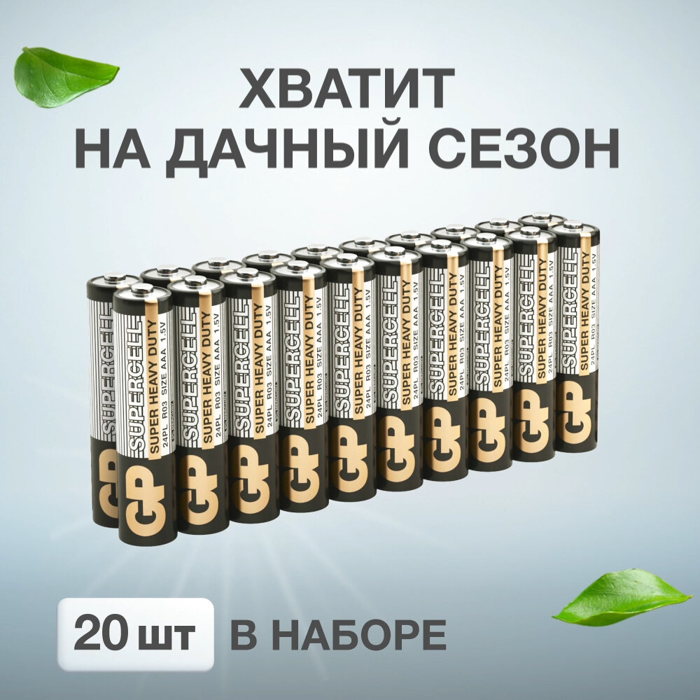 Батарейки ААА мизинчиковые солевые GP 24PLEBRA, 1.5 В, LR-03, набор 20 шт. интересное: