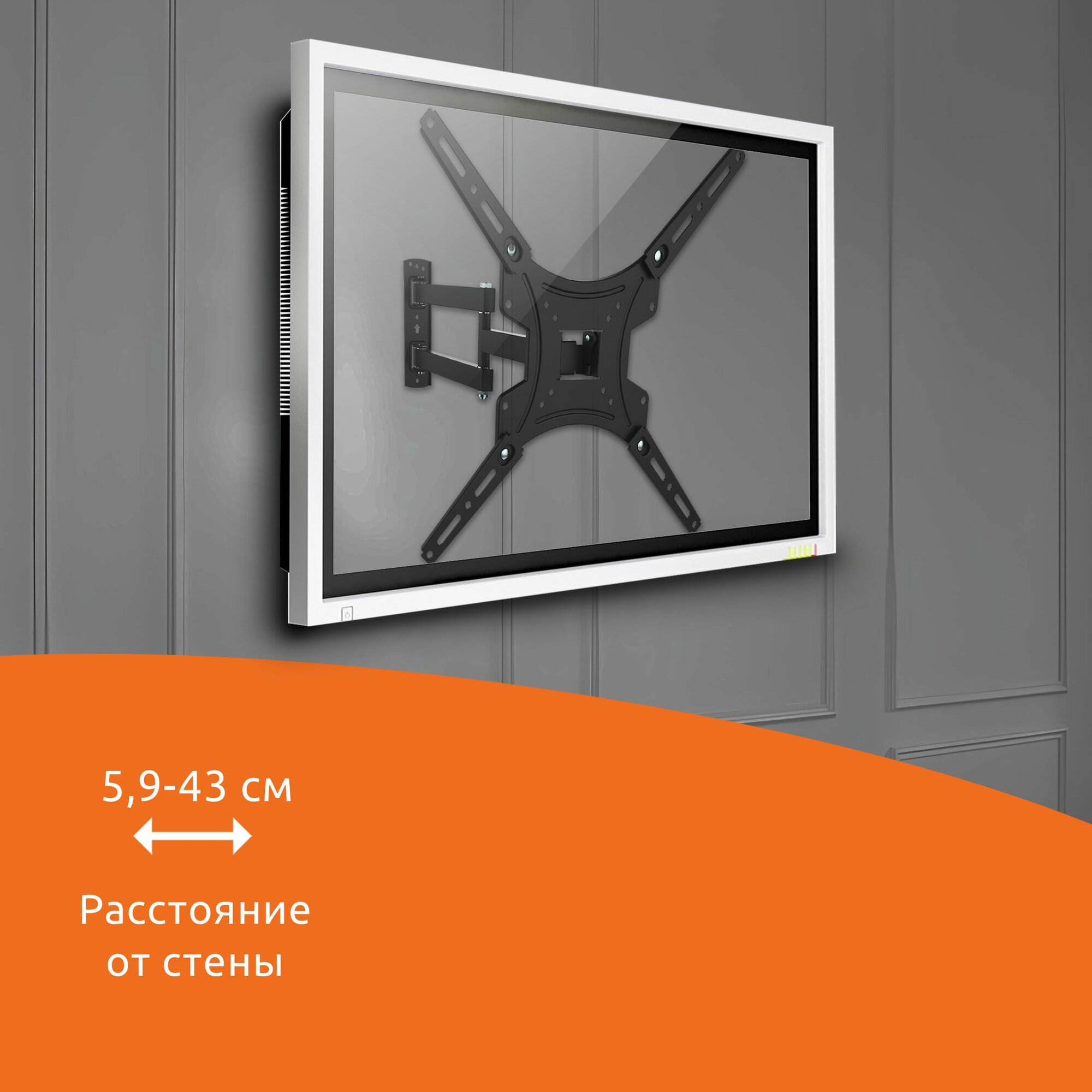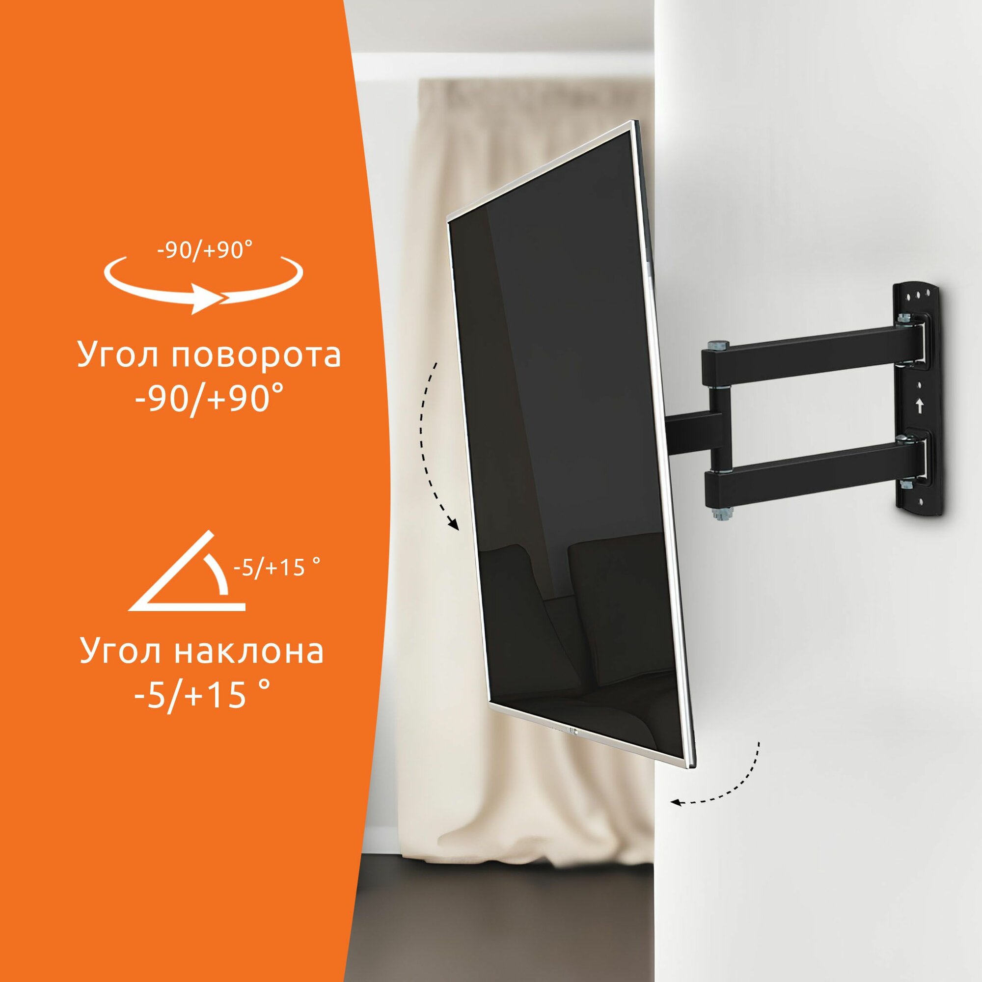 Кронштейн для телевизора SunWind 5FS, 20-65", настенный, поворотно-выдвижной и наклонный, черный [sun-ma74f325] интересное: