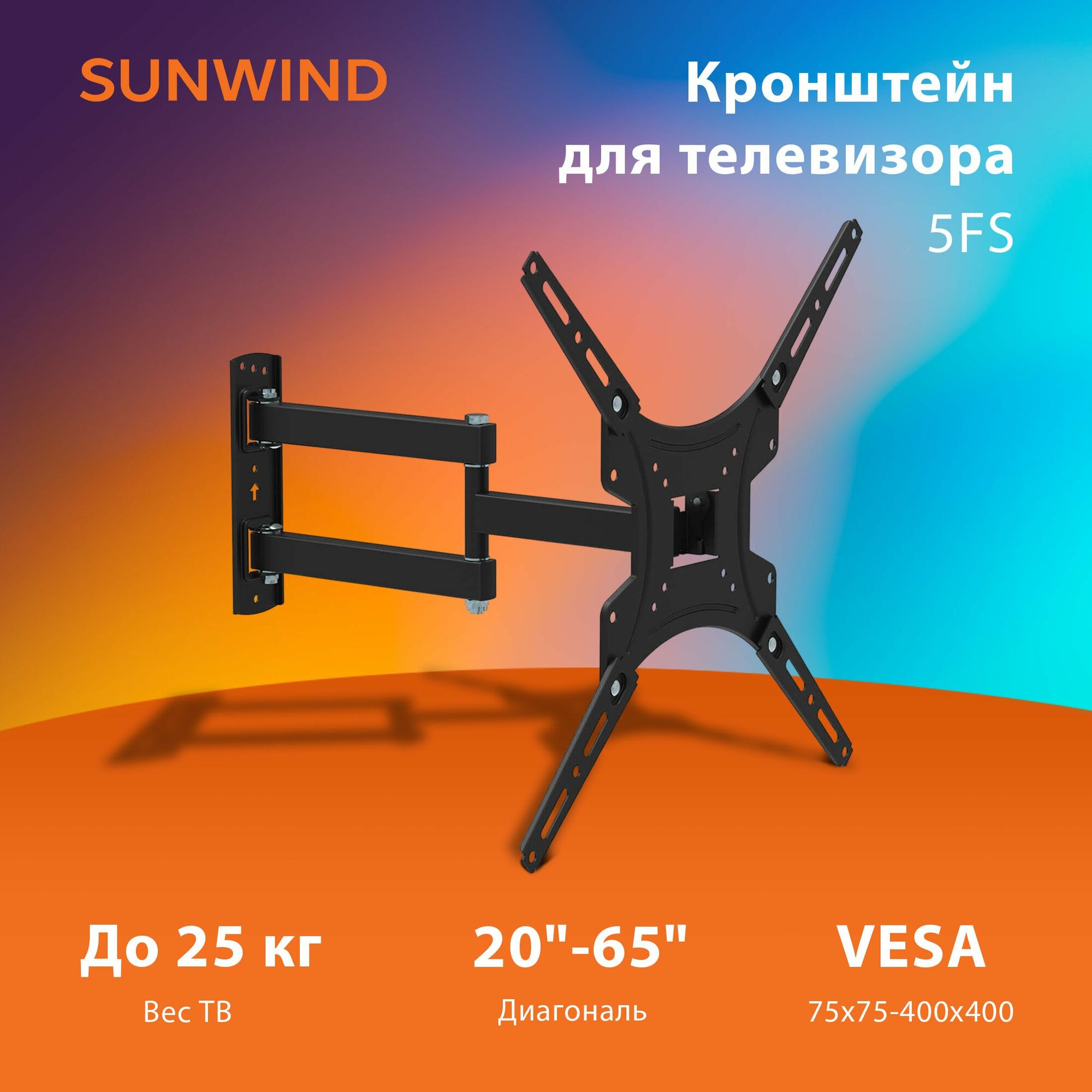Купить Кронштейн для телевизора SunWind 5FS, 20-65", настенный, поворотно-выдвижной и наклонный, черный [sun-ma74f325]